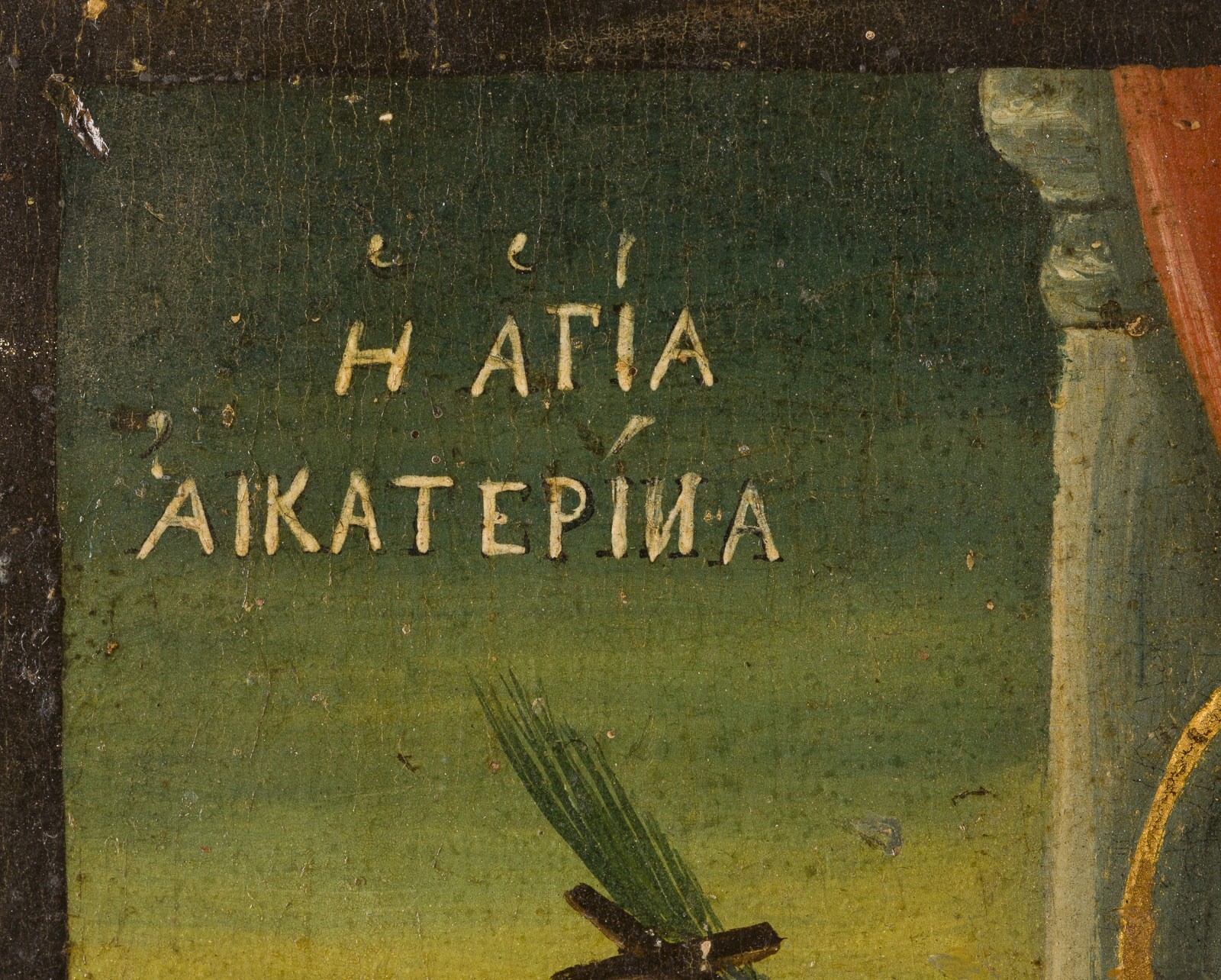 SIGNIERTE UND DATIERTE IKONE MIT DER HEILIGEN KATHARINA