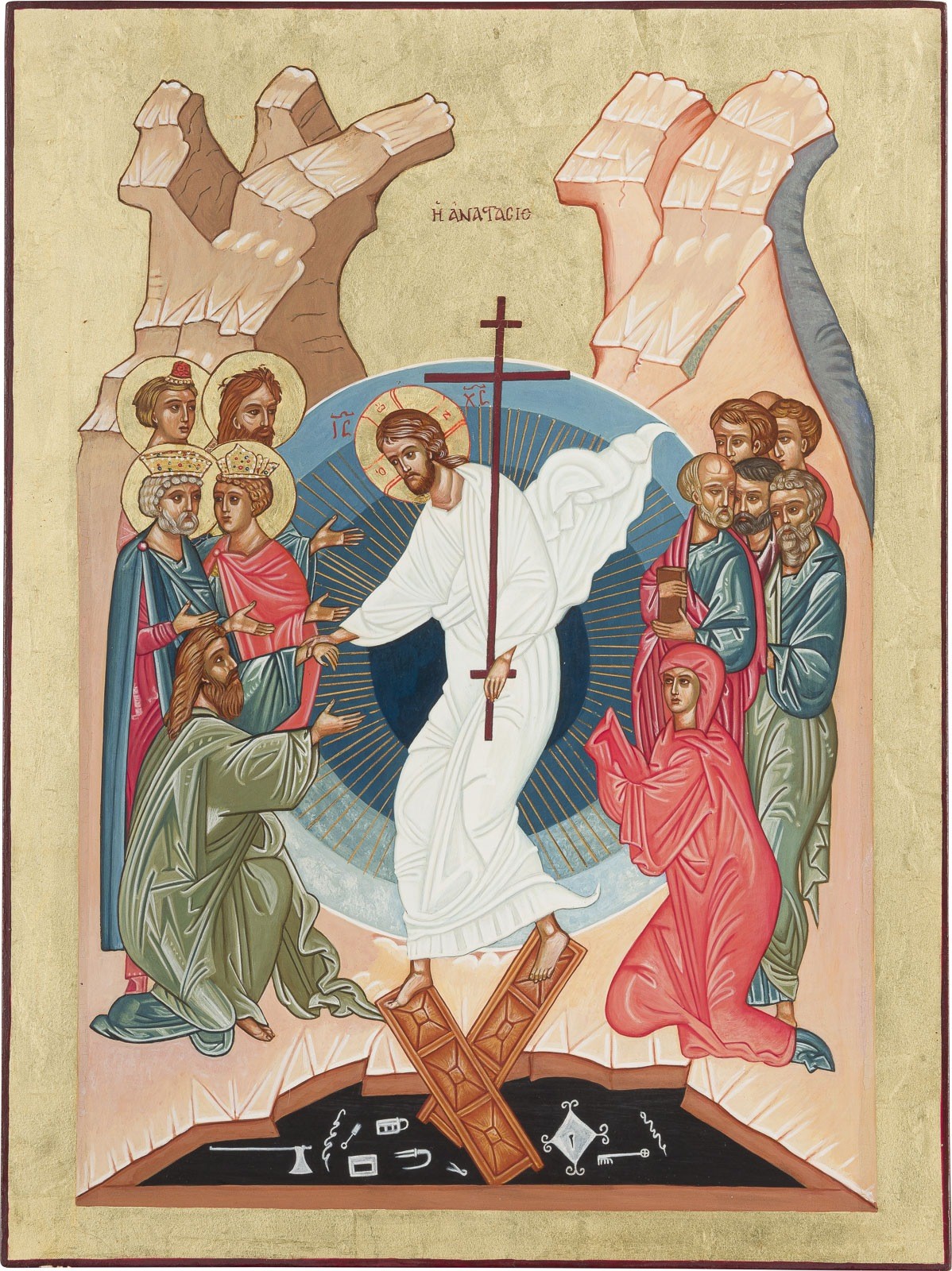 VIER GROSSE IKONEN MIT CHRISTUS, DEM ERZENGEL GABRIEL, DER HÖLLENFAHRT UND DEM PROPHETEN ELIAS