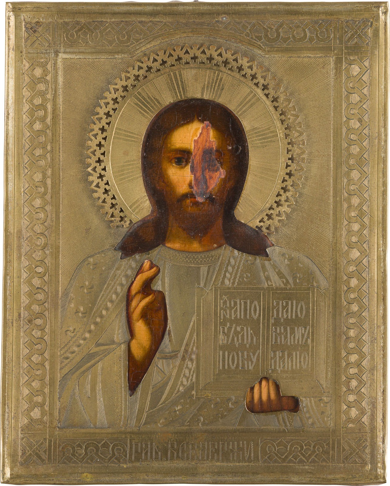 Holztafeln, Eitempera auf Kreidegrund / Ölmalerei, partielle Vergoldung. Messingoklad mit Gravurdekor. H. 17-22,2 cm. Teils besch., rest.