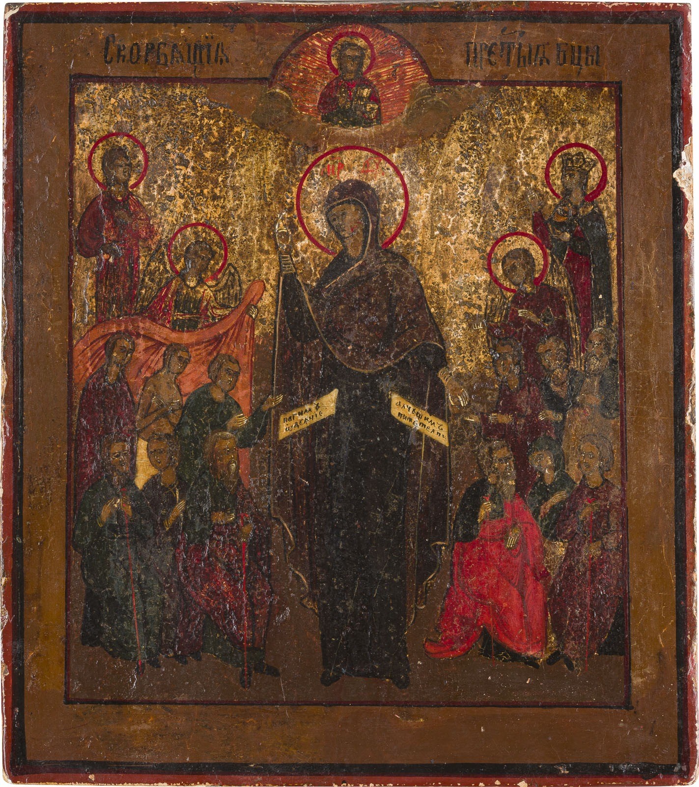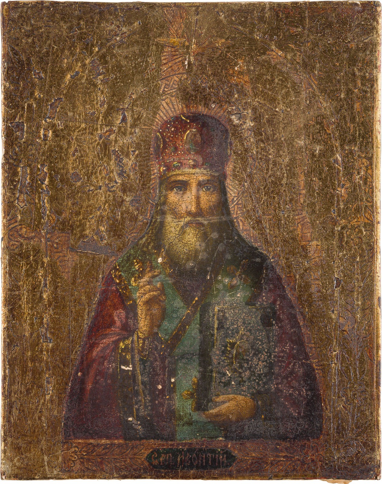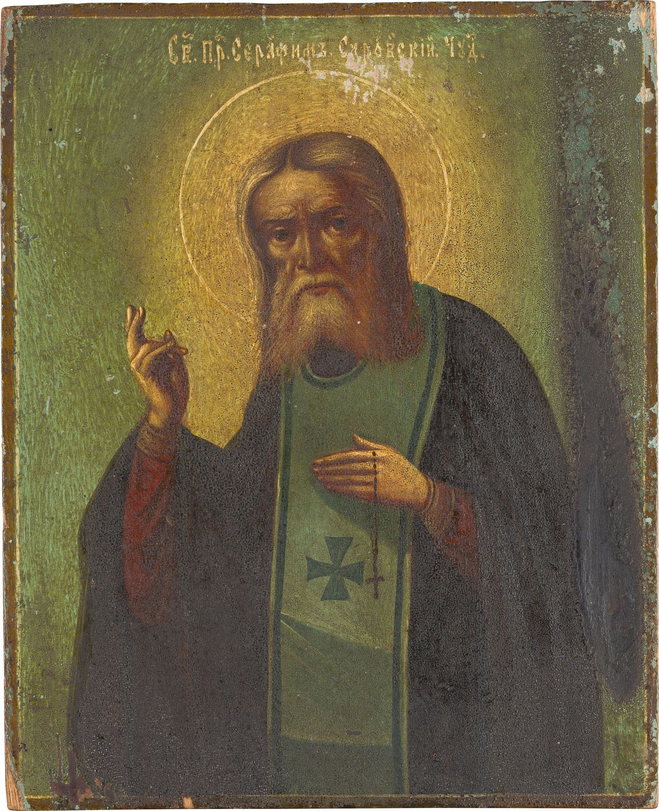 VIER IKONEN: HEILIGER LEONTIJ VON ROSTOW, HEILIGER SERAFIM VON SAROW, CHRISTUS PANTOKRATOR UND GOTTESMUTTER 'FREUDE ALLER LEIDENDEN'