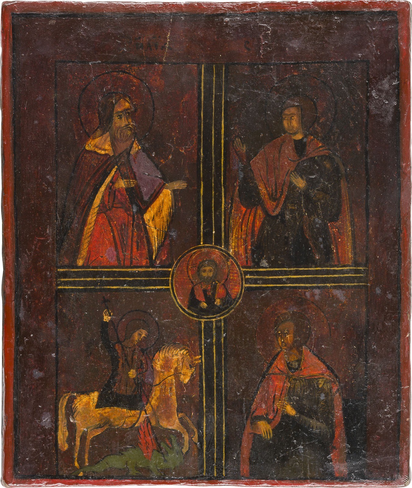 VIERFELDER-IKONE MIT AUSGEWÄHLTEN HEILIGEN