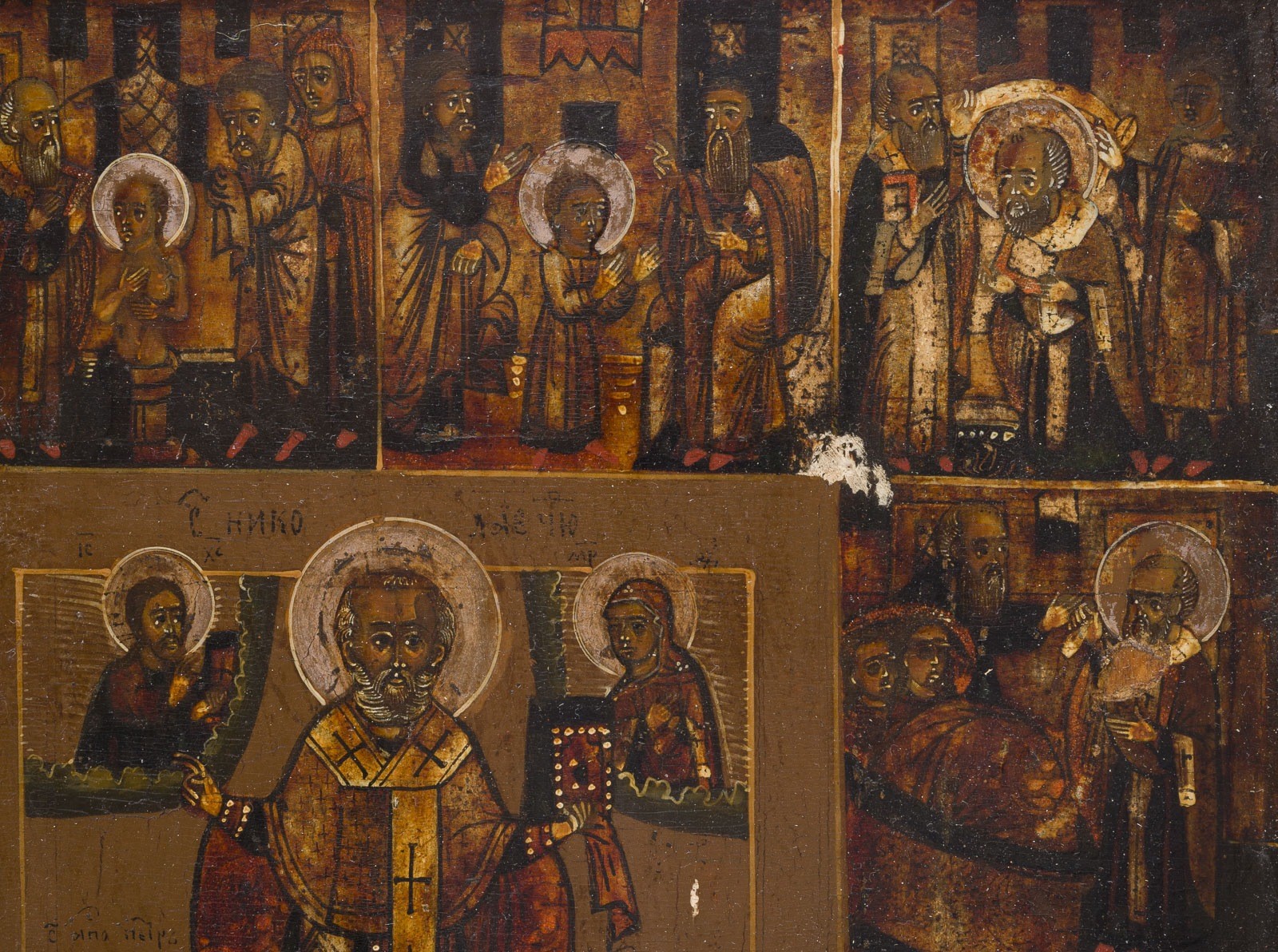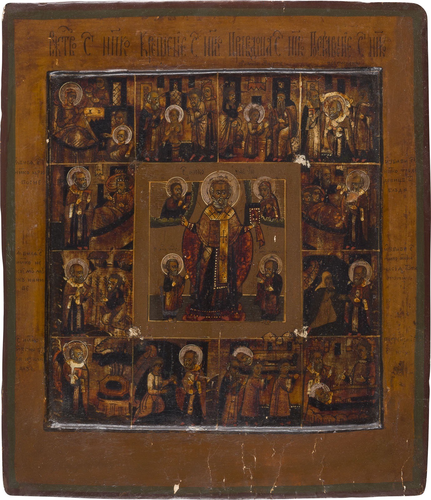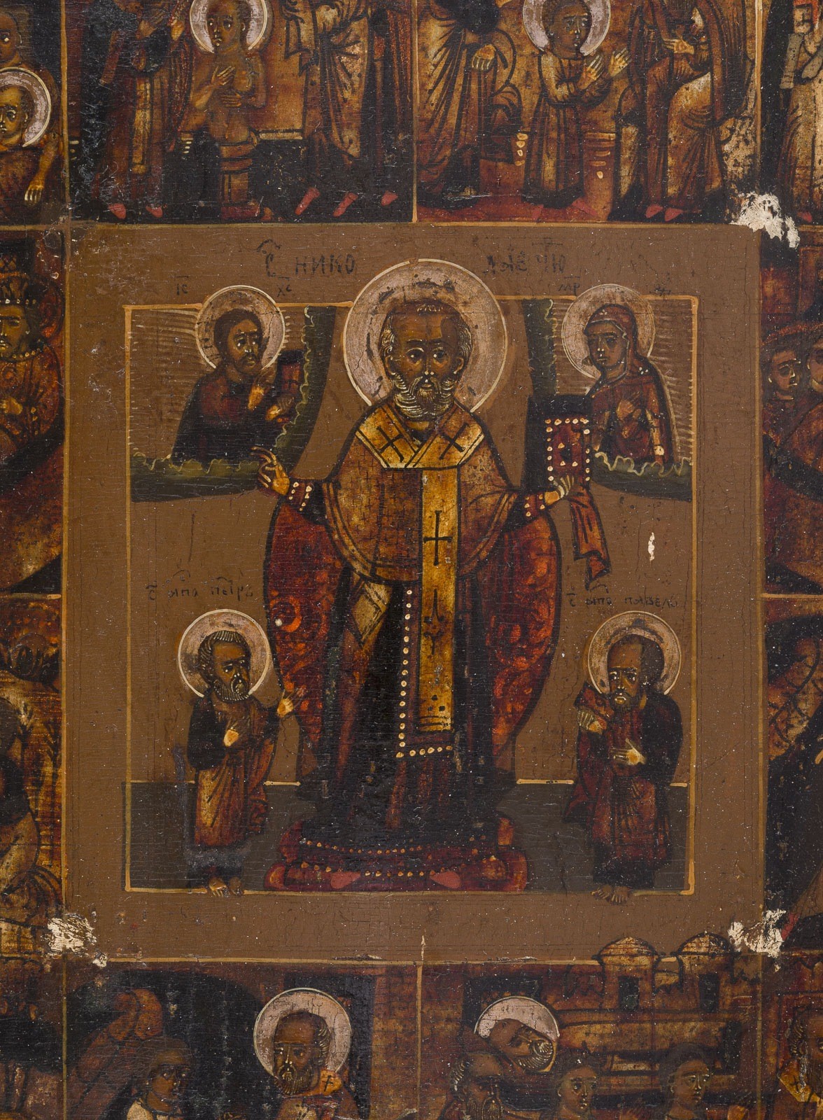 VITA-IKONE MIT DEM HEILIGEN NIKOLAUS VON MYRA FLANKIERT VON DEN APOSTELN PETRUS UND PAULUS