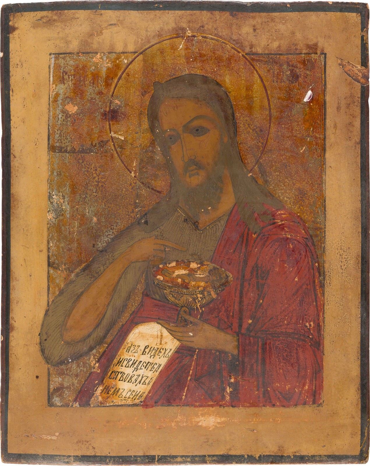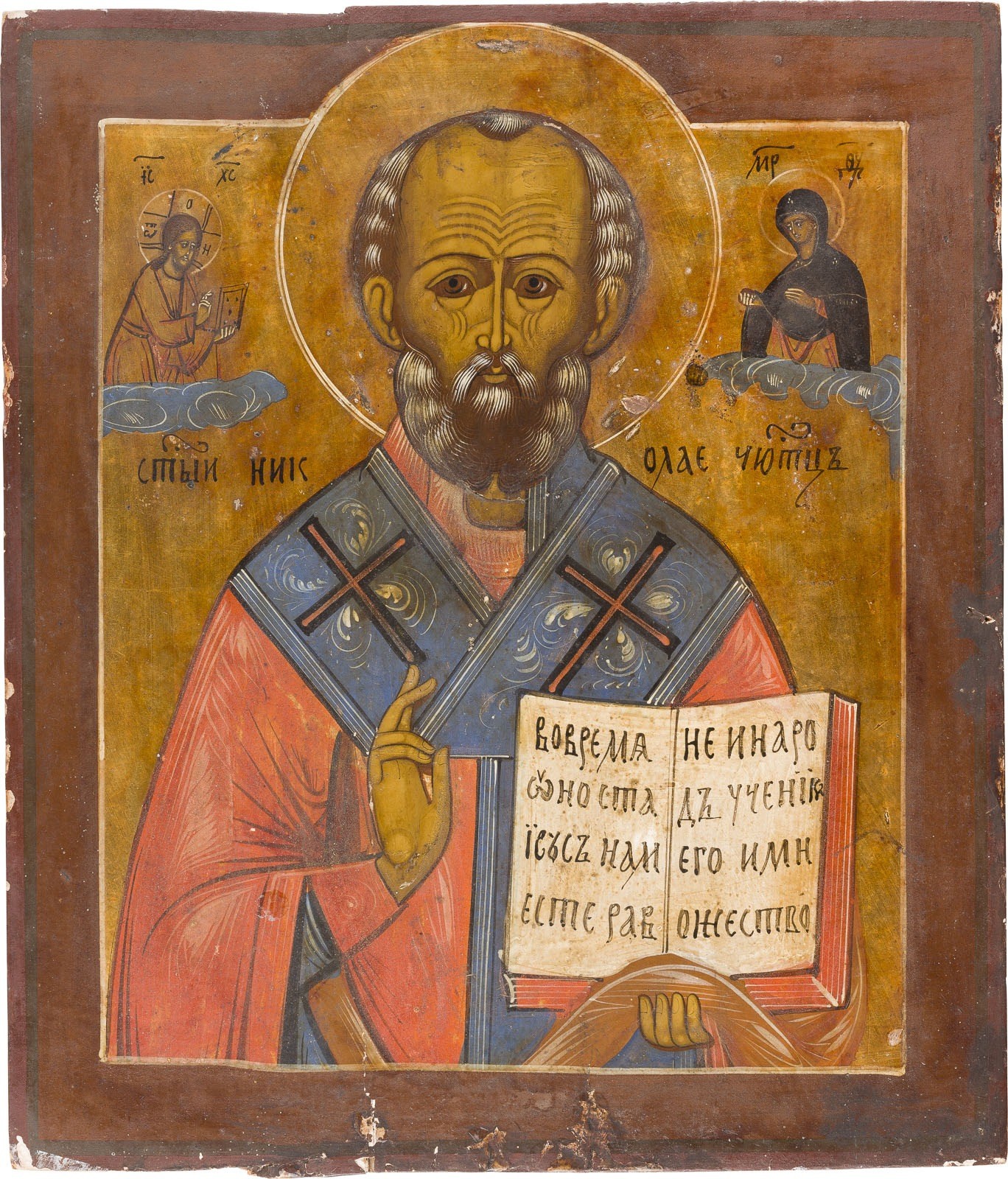 ZWEI GROSSE IKONEN: HEILIGER NIKOLAUS VON MYRA UND JOHANNES DER VORLÄUFER AUS EINER DEESIS