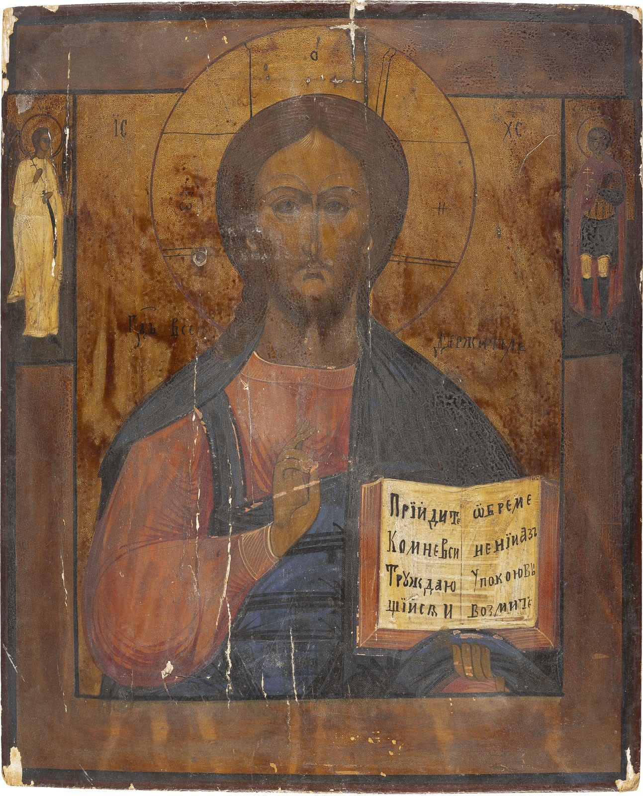 ZWEI GROSSFORMATIGE IKONEN: CHRISTUS PANTOKRATOR UND JOHANNES DER VORLÄUFER AUS EINER DEESIS