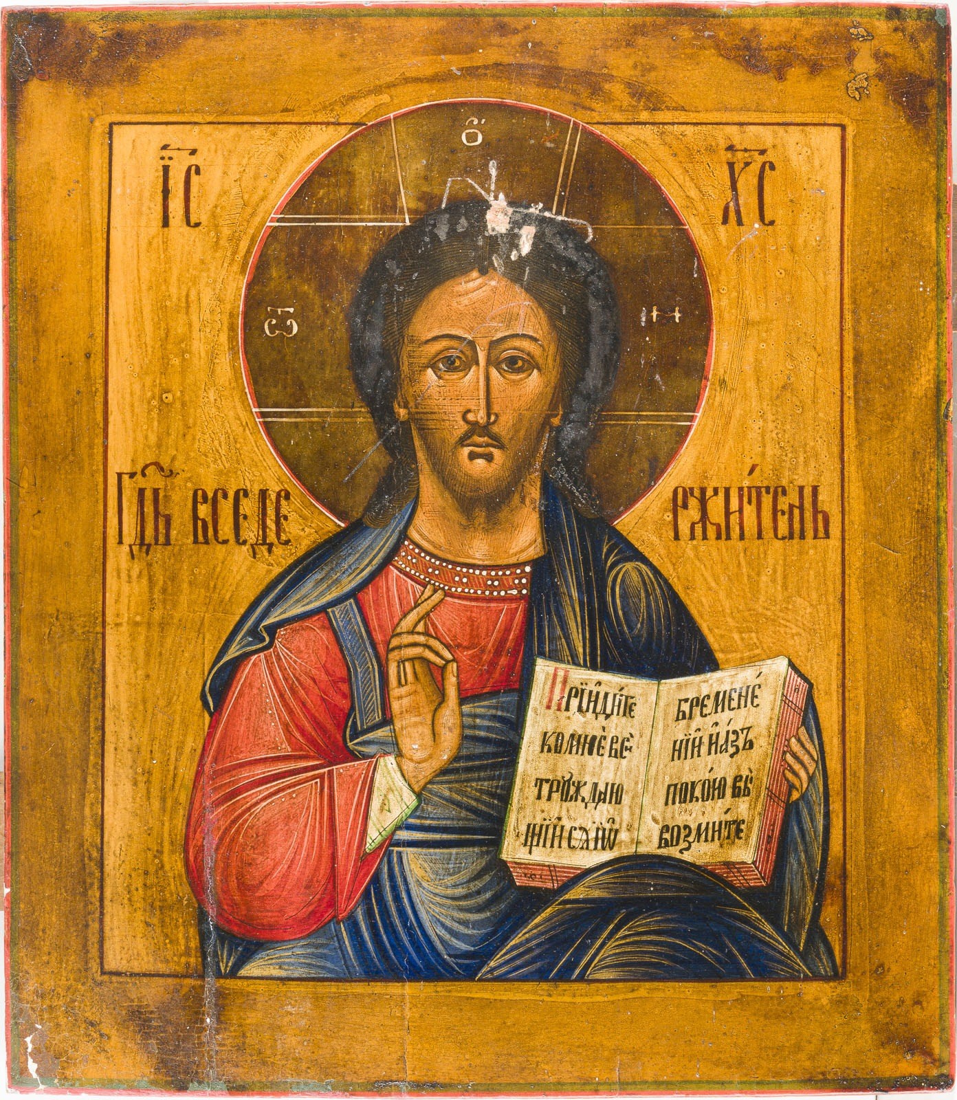 ZWEI IKONEN: CHRISTUS PANTOKRATOR UND DAS HAUPT JOHANNES DES VORLÄUFERS