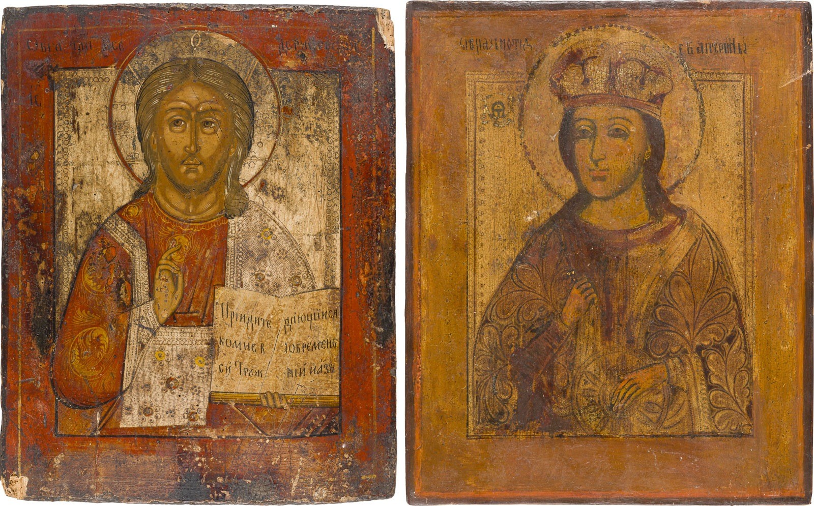 ZWEI IKONEN: CHRISTUS PANTOKRATOR UND HEILIGE KATHARINA