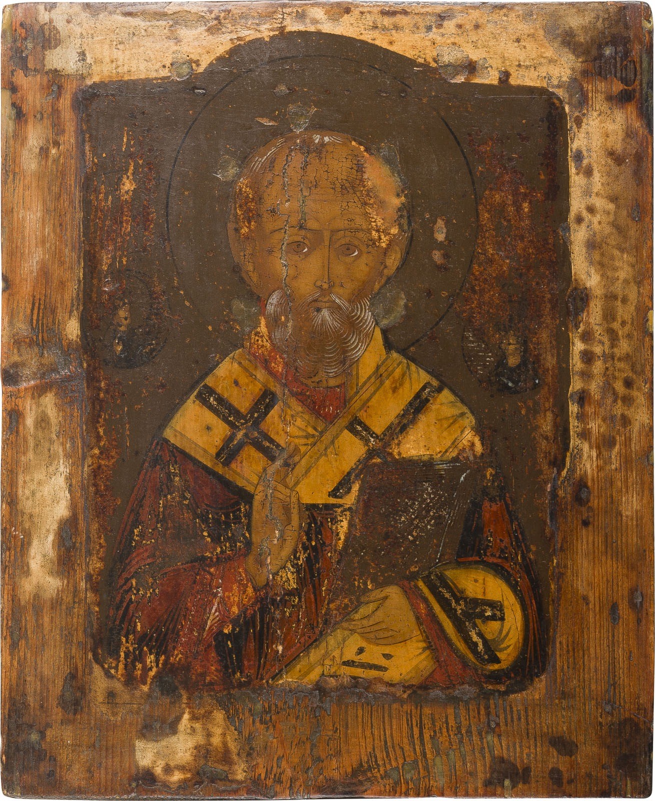 Holztafeln, Eitempera auf Kreidegrund, partielle Vergoldung. 26,8 x 21,6 cm / 30,6 x 25,7 cm. Substanzverluste, rezente Bemalung.