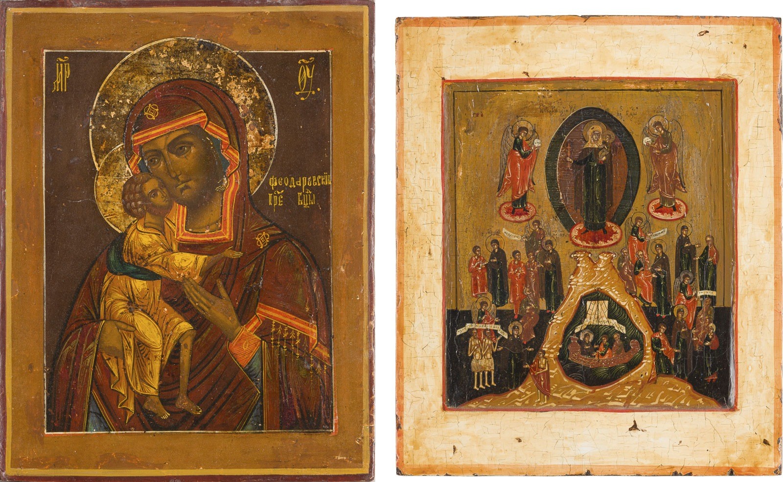 ZWEI IKONEN: GOTTESMUTTER FEODOROWSKAJA UND GOTTESMUTTER 'FREUDE ALLER LEIDENDEN'