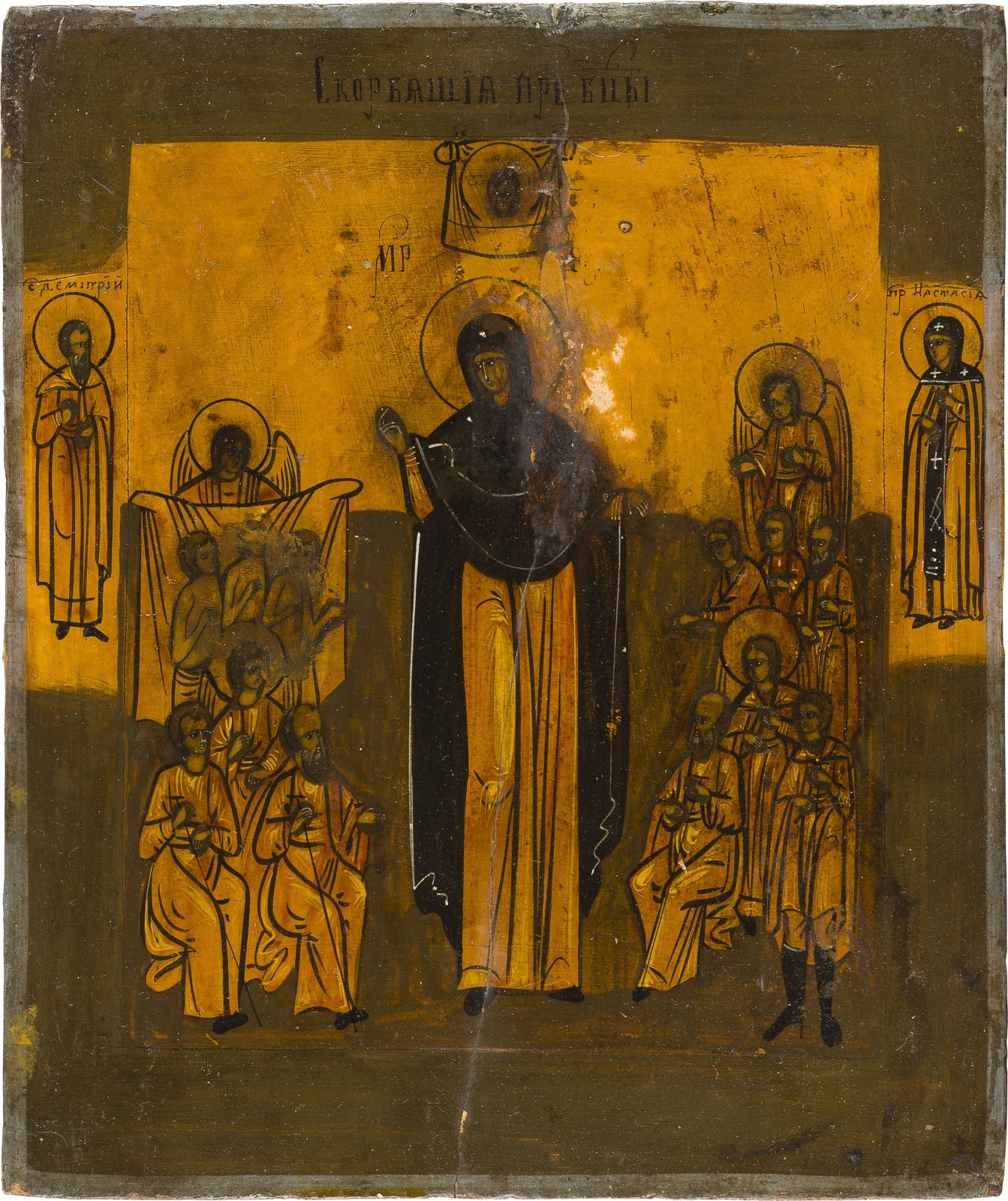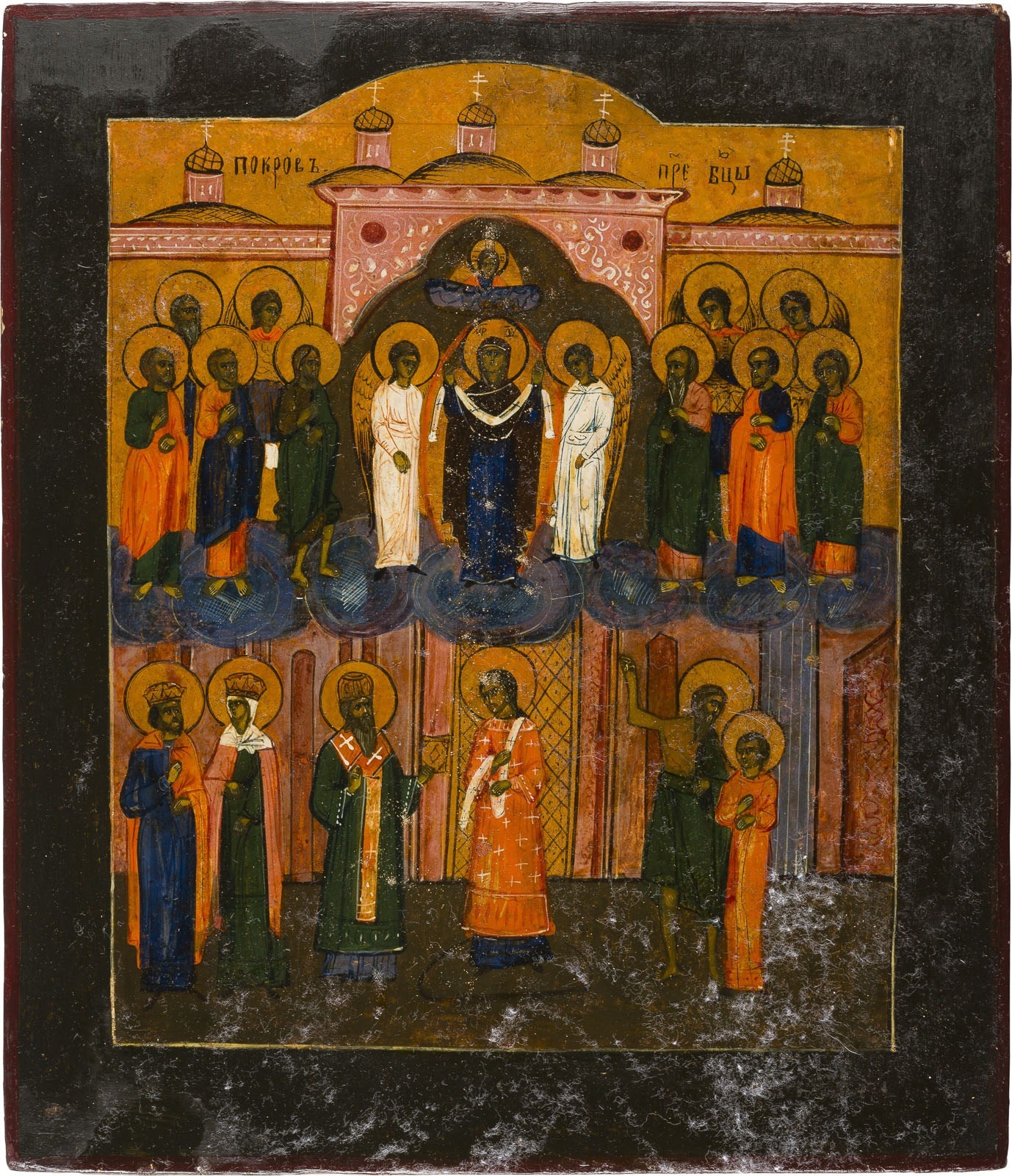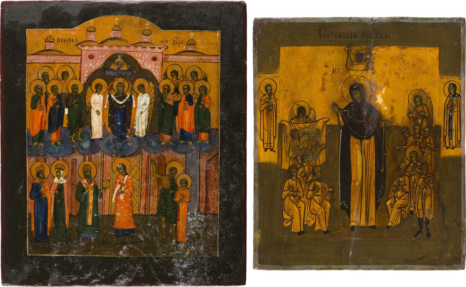 ZWEI IKONEN: GOTTESMUTTER POKROW UND GOTTESMUTTER 'FREUDE ALLER LEIDENDEN'