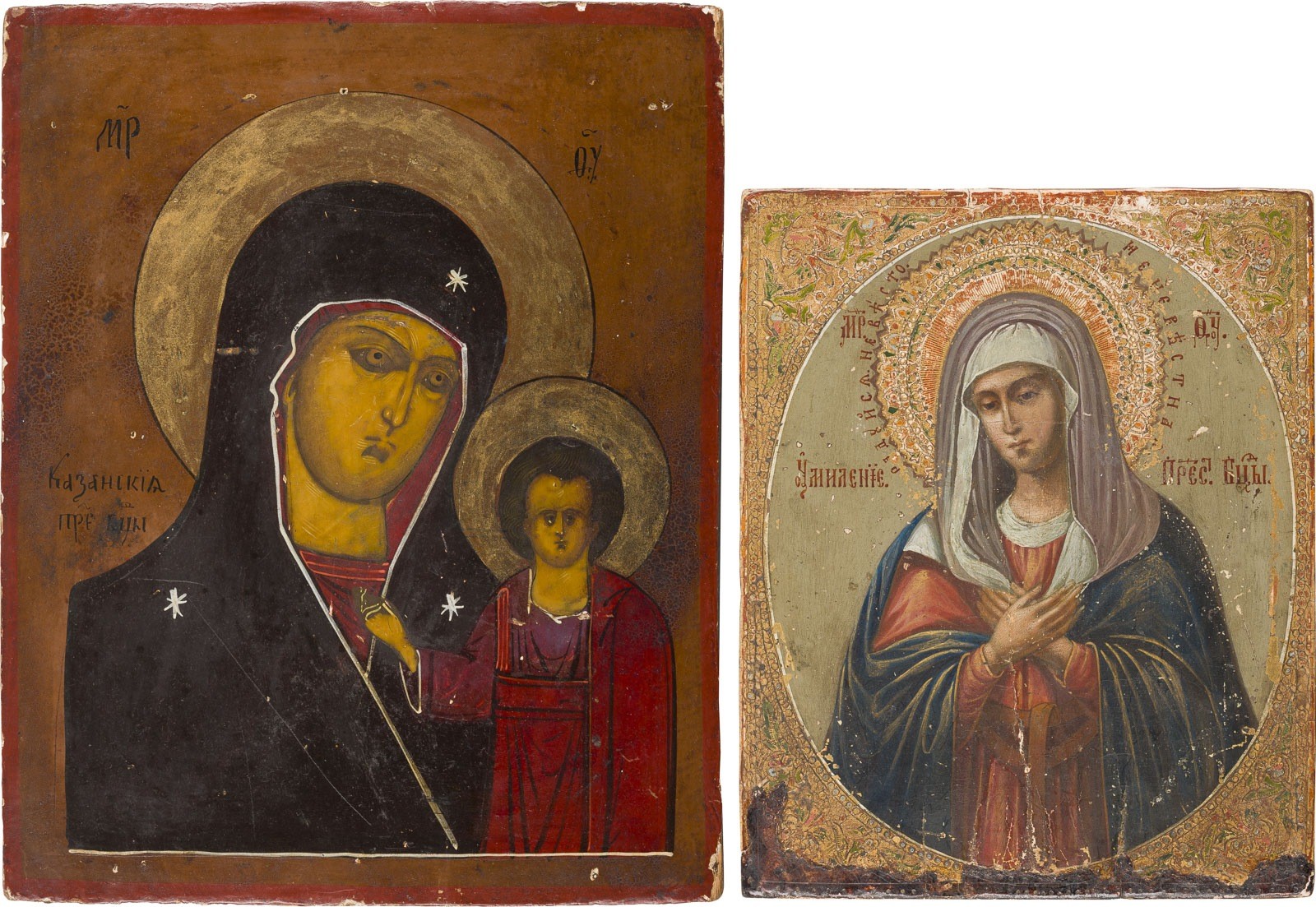 ZWEI IKONEN: GOTTESMUTTER 'RÜHRUNG' VOM SERAFIM-KLOSTER IN DIVEEVO UND GOTTESMUTTER VON KASAN (KASANSKAJA)