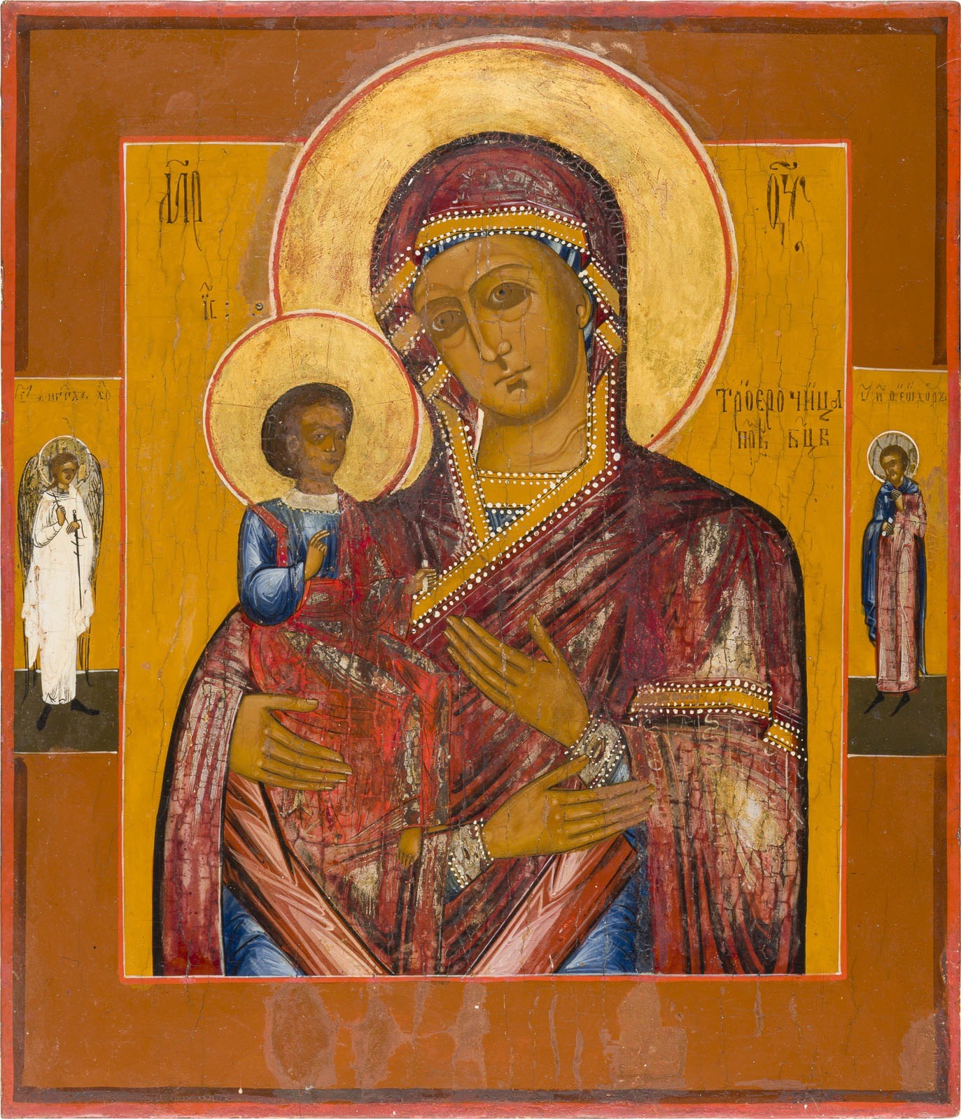 ZWEI IKONEN: GOTTESMUTTER VON KASAN (KASANSKAJA) MIT OKLAD UND DREIHÄNDIGE GOTTESMUTTER (TRICHEIROUSA)