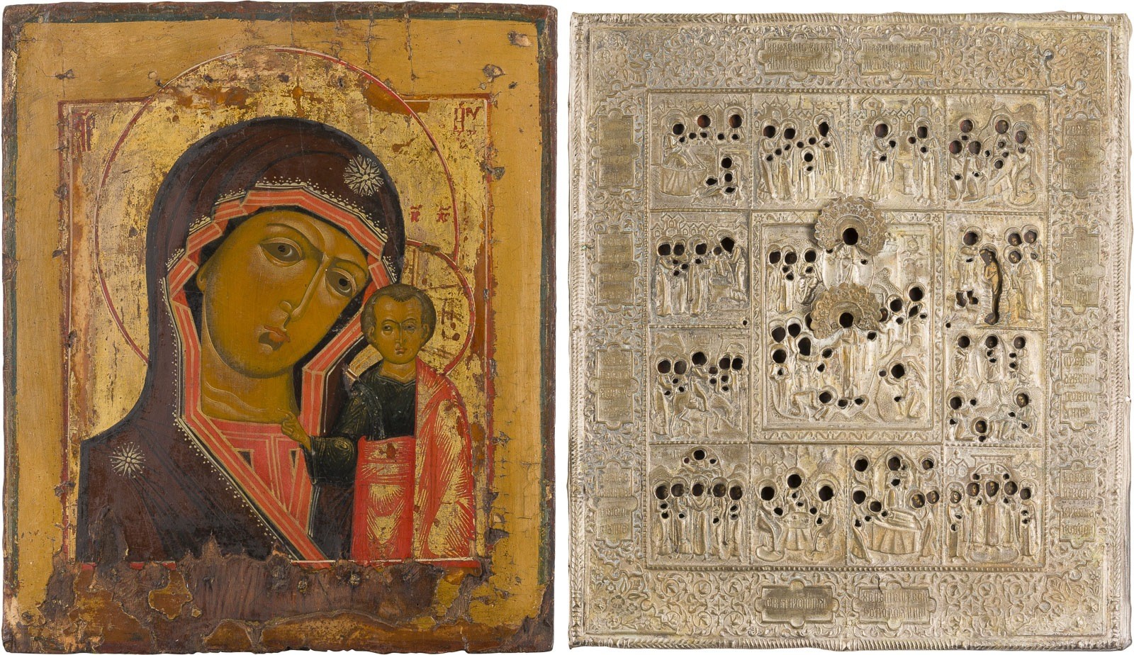 ZWEI IKONEN: GOTTESMUTTER VON KASAN (KASANSKAJA) UND FESTTAGSIKONE
