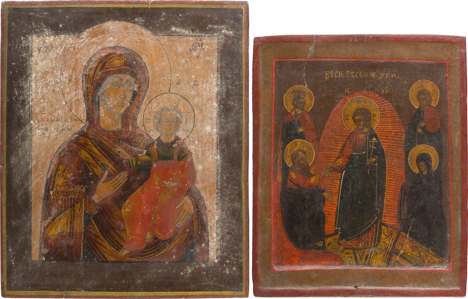 ZWEI IKONEN: GOTTESMUTTER VON SMOLENSK (SMOLENSKAJA) UND HÖLLENFAHRT CHRISTI