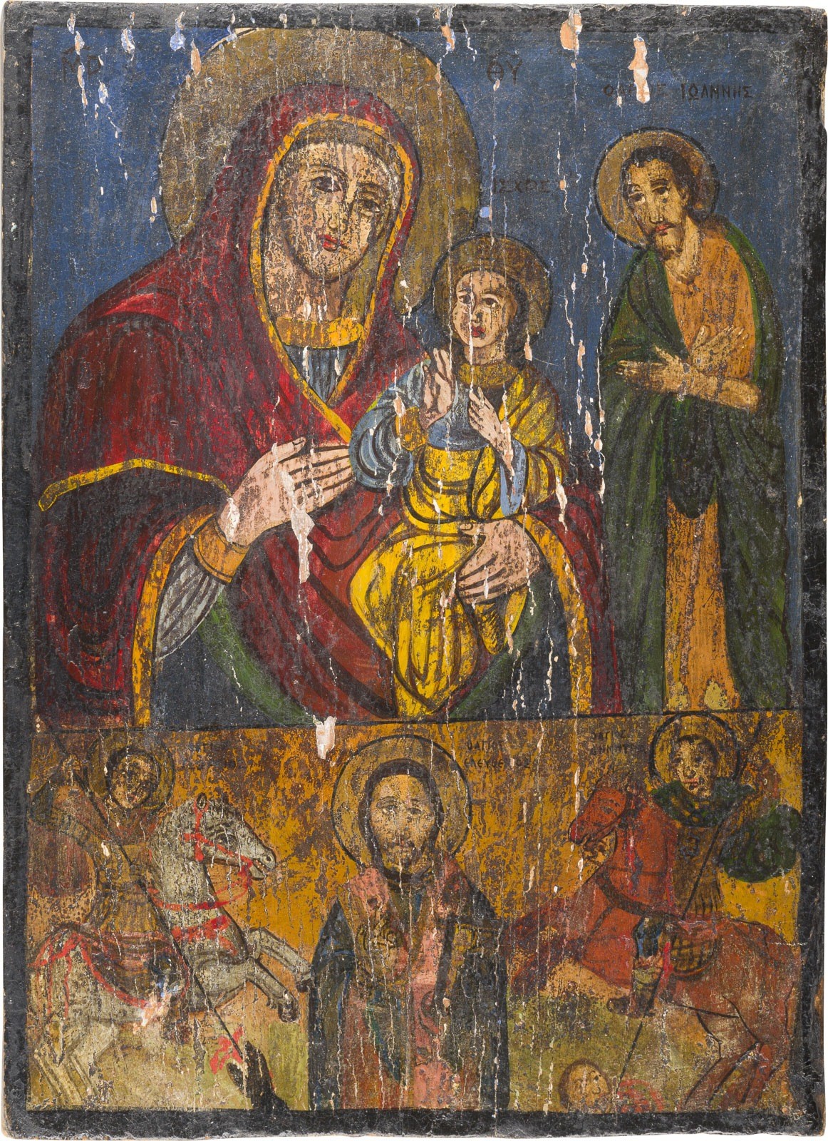 ZWEI IKONEN: HEILIGER DEMETRIOS UND ZWEIFELDER-IKONE MIT DER GOTTESMUTTER UND HEILIGEN