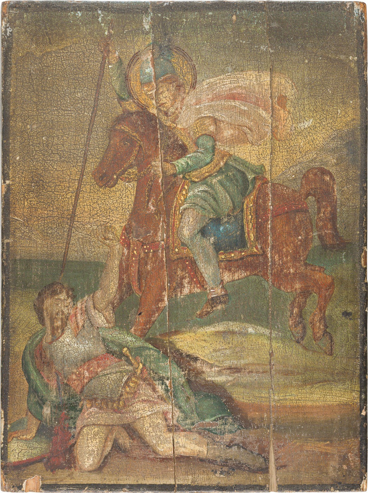 Holztafeln, Ölmalerei. 29,5 x 22 cm / 34,7 x 25,3 cm. Substanzverluste, vertikale Risse.
