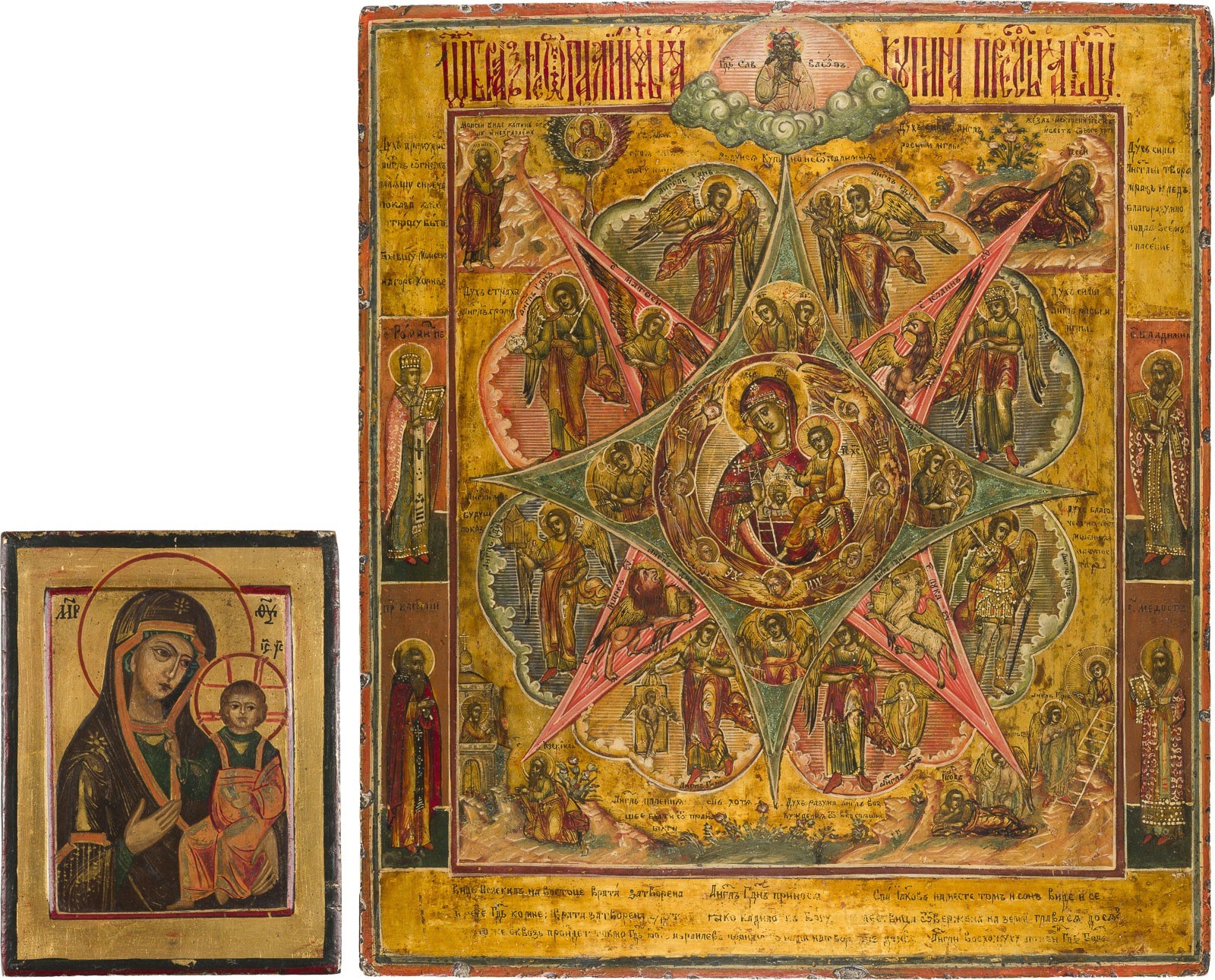 ZWEI IKONEN: IKONE MIT DER GOTTESMUTTER 'UNVERBRENNBARER DORNBUSCH' UND KLEINE IKONE