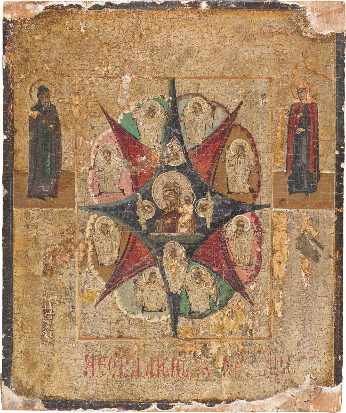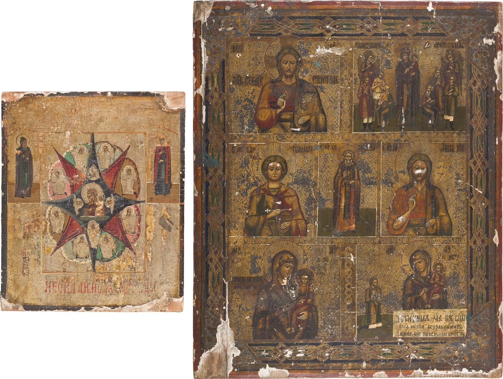 ZWEI IKONEN: KLEINE IKONE MIT DER GOTTESMUTTER 'UNVERBRENNBARER DORNBUSCH' UND MEHFELDER-IKONE