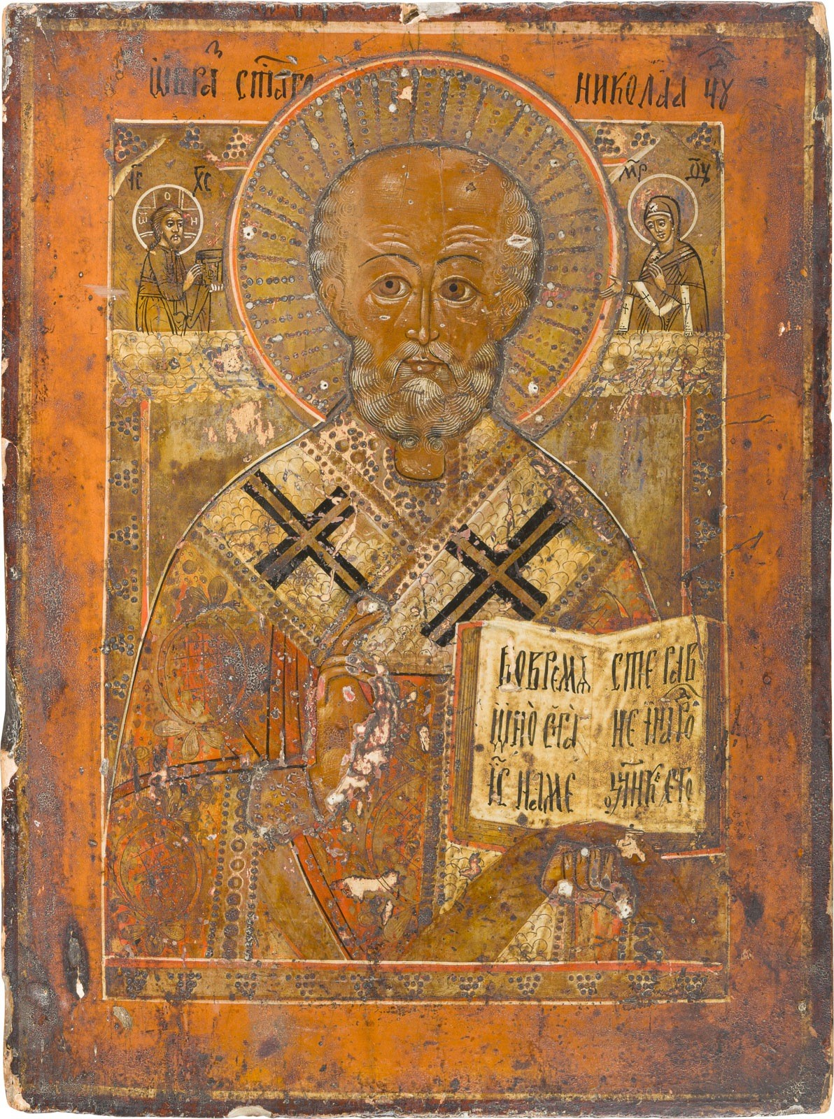 ZWEI IKONEN: KREUZIGUNG CHRISTI UND HEILIGER NIKOLAUS VON MYRA