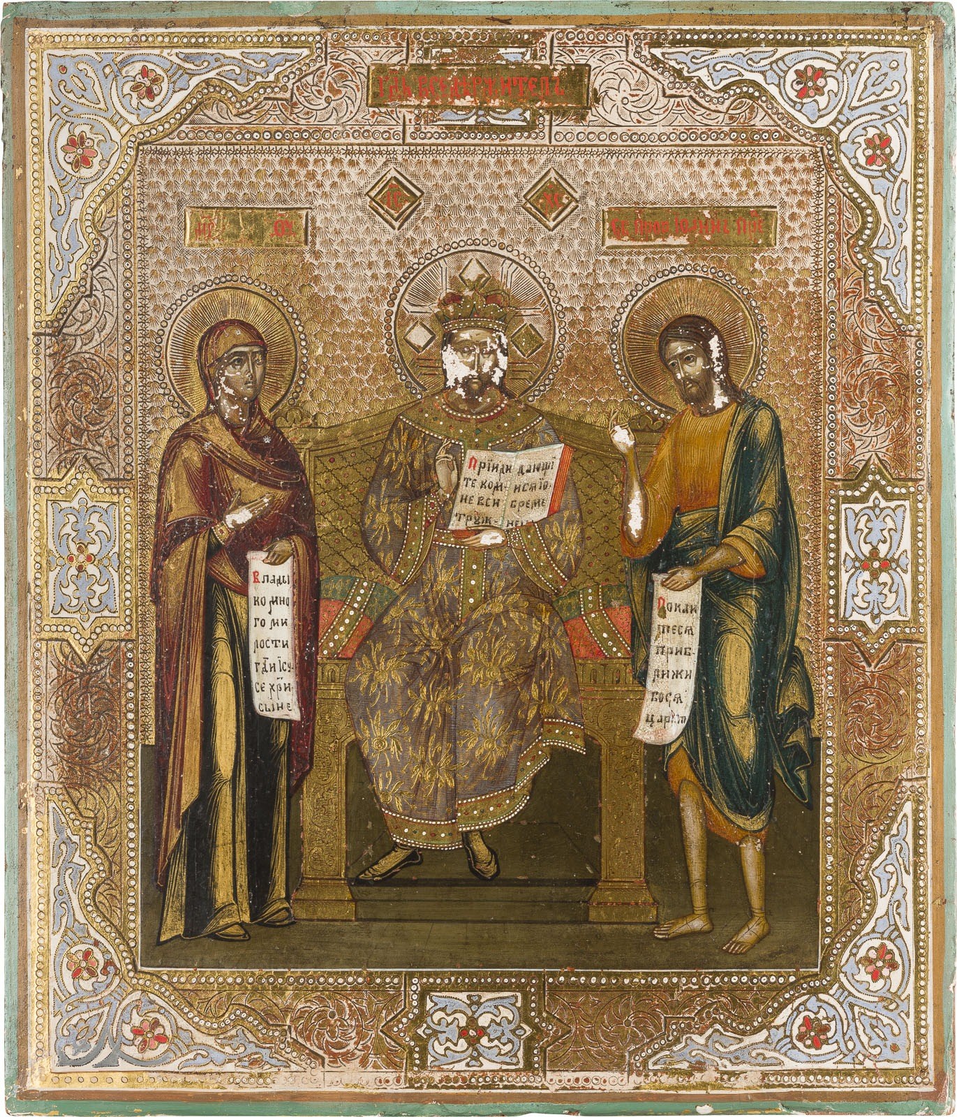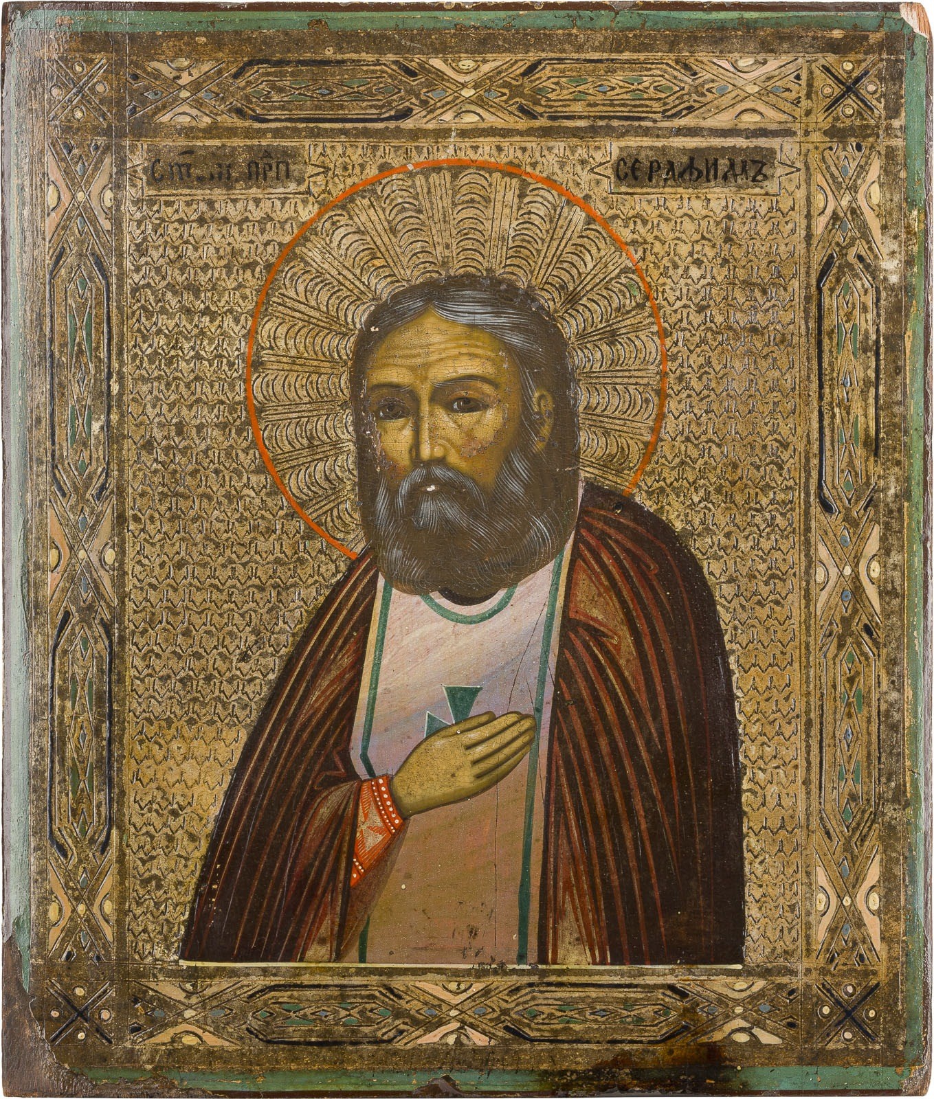 ZWEI IKONEN MIT DEESIS UND DEM HEILIGEN SERAFIM VON SAROW UND KRUZIFIX