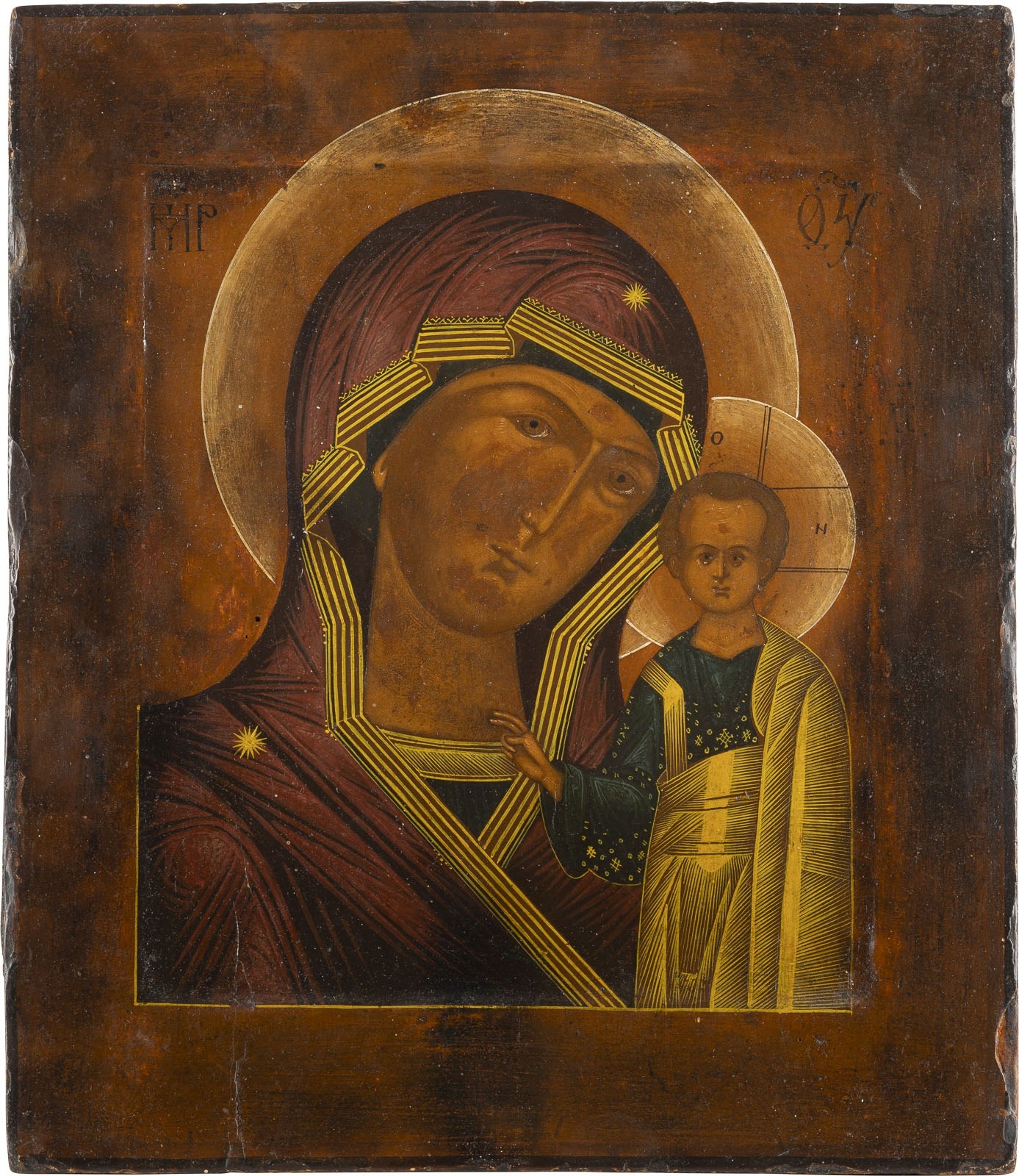 ZWEI IKONEN MIT DER GOTTESMUTTER VON KASAN (KASANSKAJA) UND DER DREIHÄNDIGEN GOTTESMUTTER