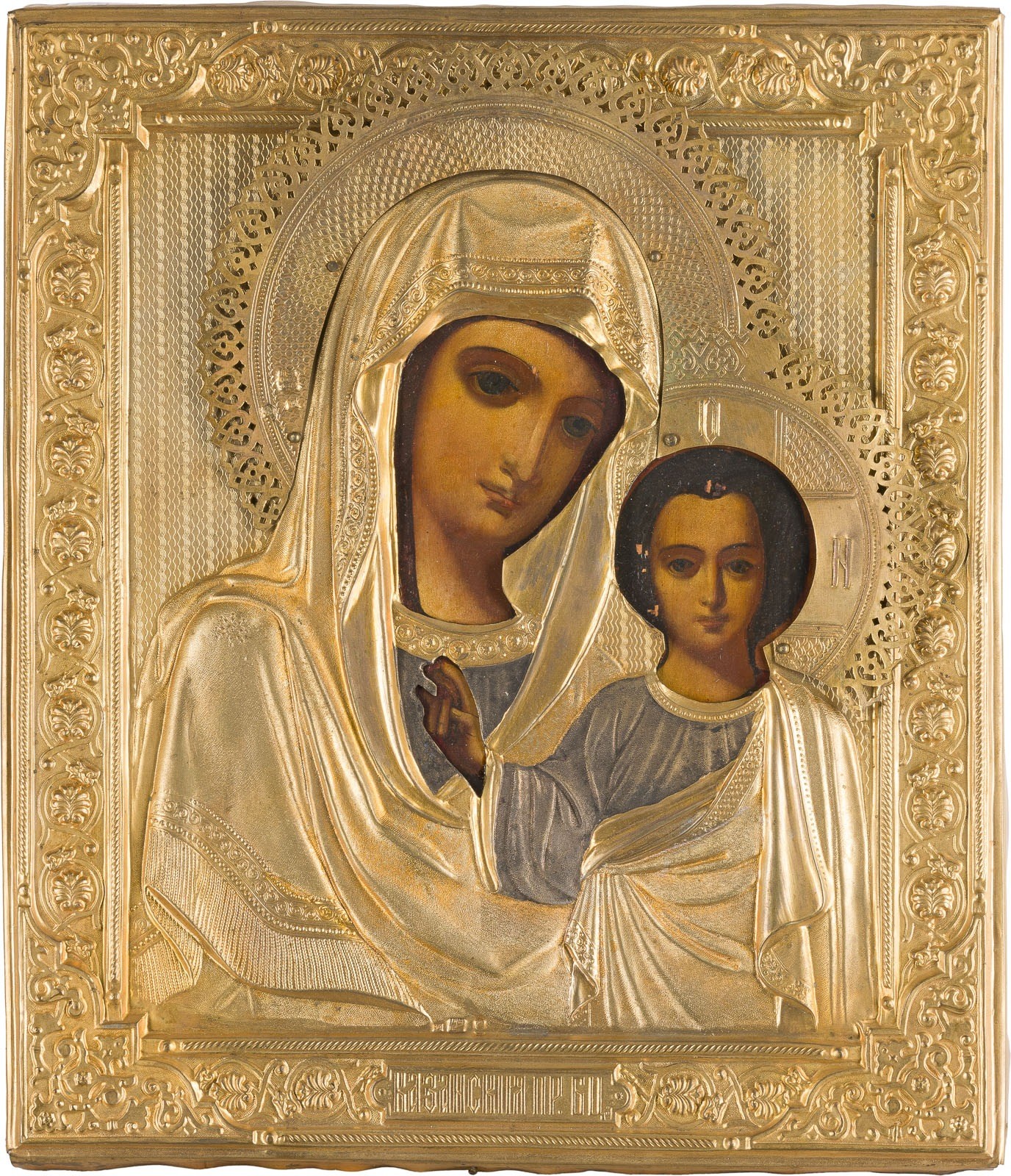 ZWEI IKONEN MIT OKLAD: CHRISTUS PANTOKRATOR UND GOTTESMUTTER VON KASAN (KASANSKAJA)