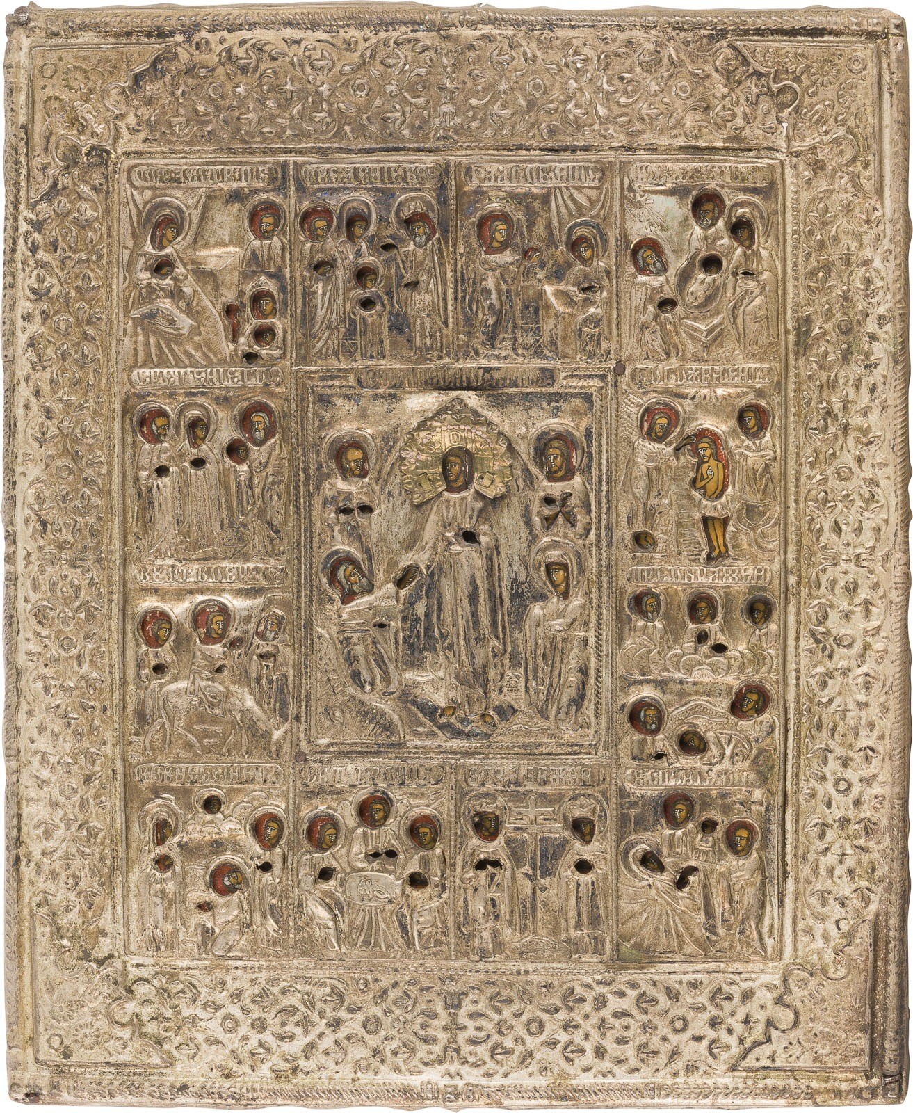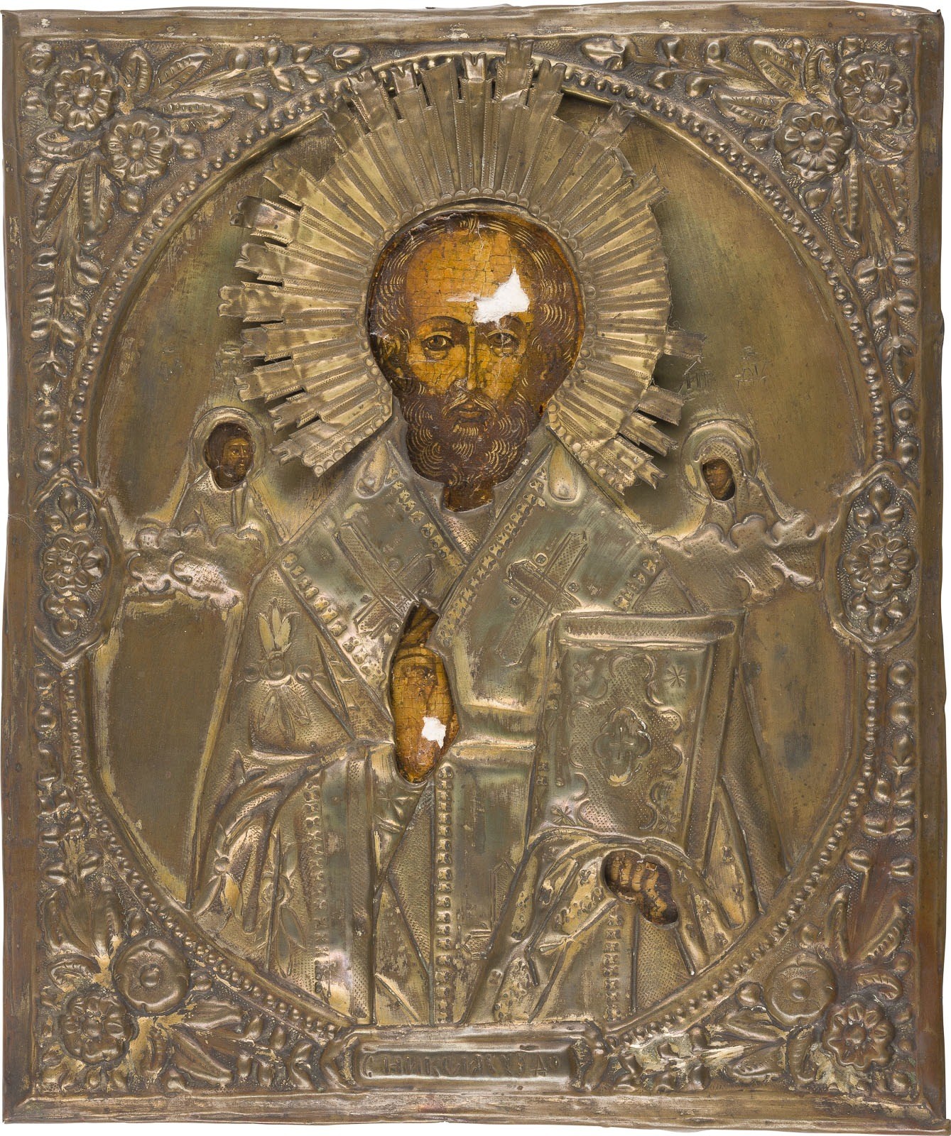 ZWEI IKONEN MIT OKLAD: FESTTAGSIKONE UND HEILIGER NIKOLAUS VON MYRA