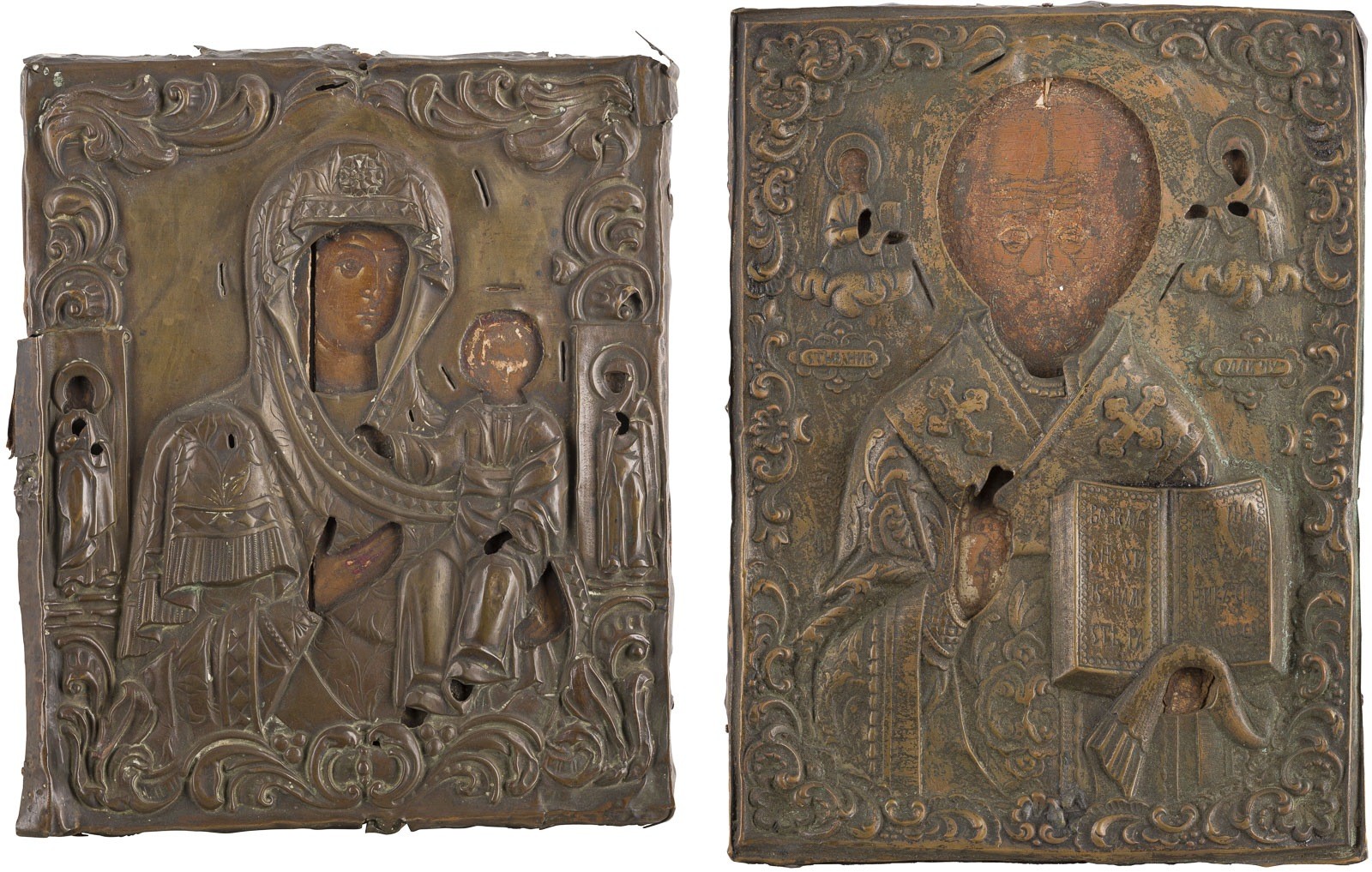 ZWEI IKONEN MIT OKLAD: GOTTESMUTTER VON SMOLENSK (SMOLENSKAJA) UND HEILIGER NIKOLAUS VON MYRA