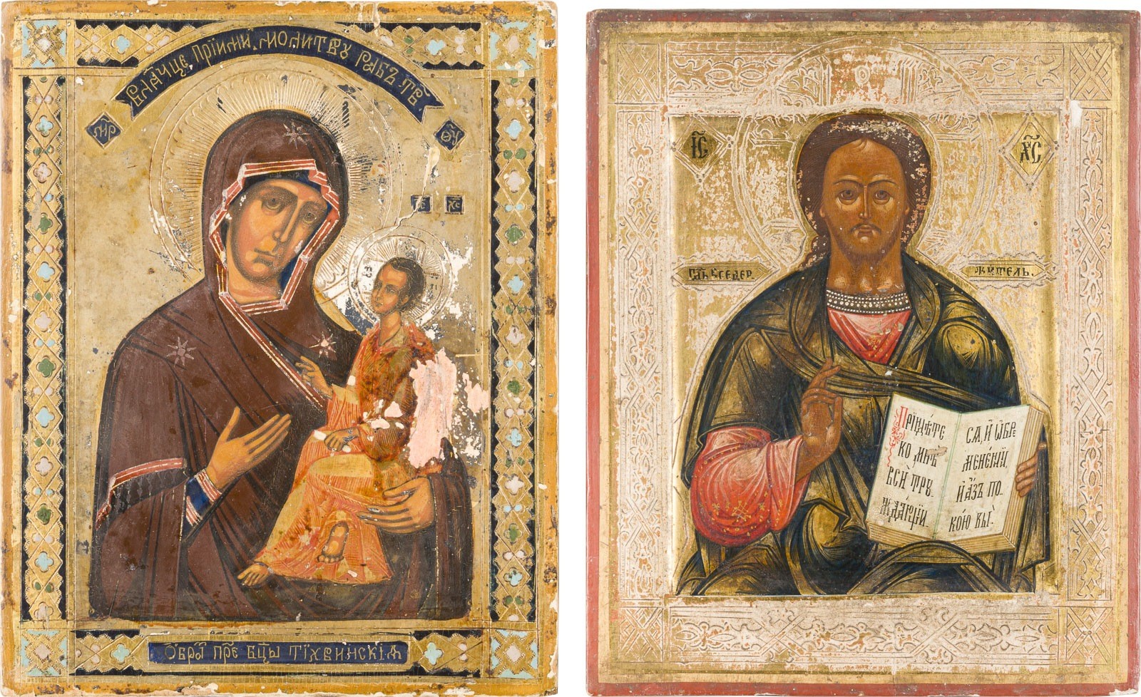 ZWEI KLEINE IKONEN: CHRISTUS PANTOKRATOR UND GOTTESMUTTER VON TICHWIN (TICHWINSKAJA)