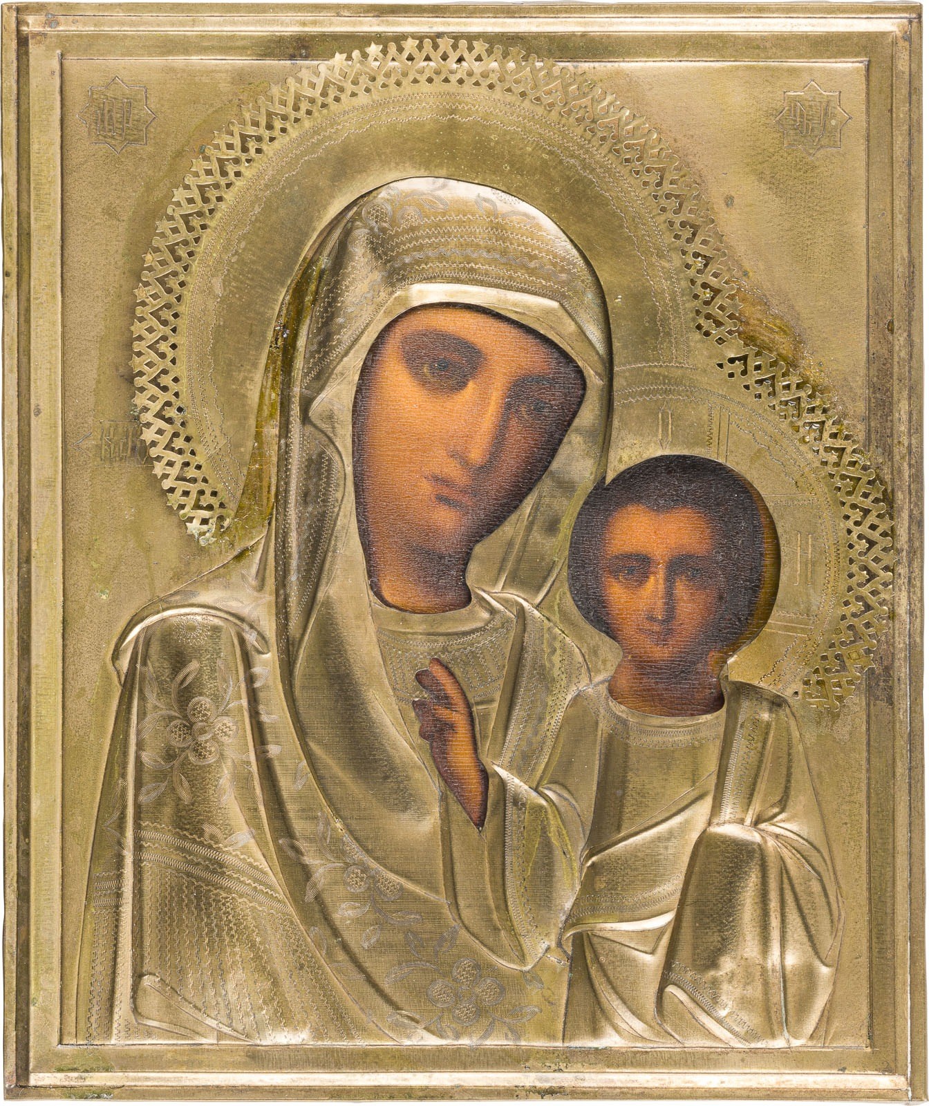 ZWEI KLEINE IKONEN: GOTTESMUTTER TICHWINSKAJA UND GOTTESMUTTER KASANSKAJA MIT OKLAD