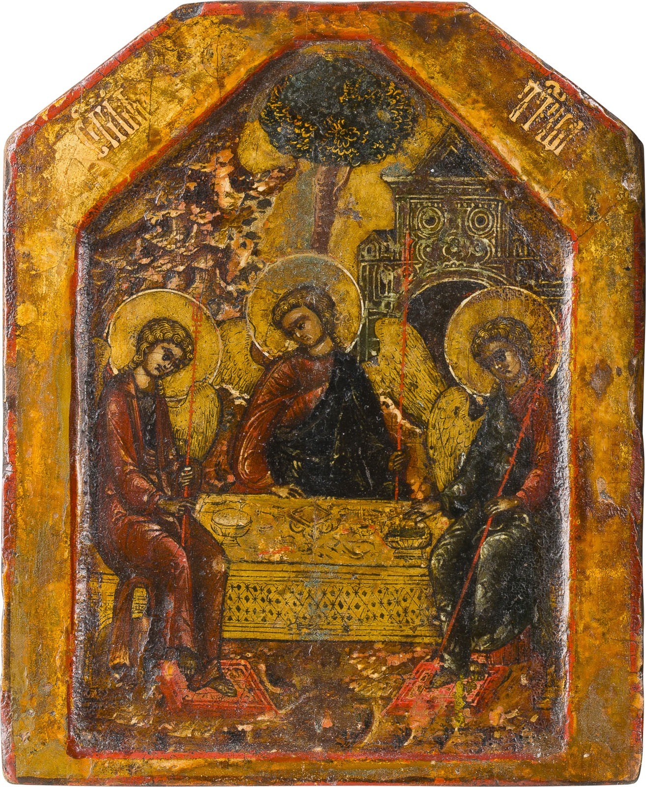 ZWEI KLEINE IKONEN: GOTTESMUTTER UND FEINE MINIATUR-IKONE MIT DER ALTTESTAMENTLICHEN DREIFALTIGKEIT