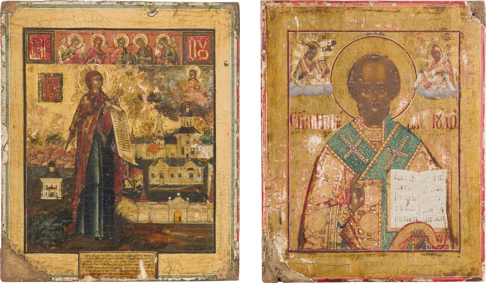 ZWEI KLEINE IKONEN MIT DER GOTTESMUTTER 'BOGOLUBSKAJA' UND DEM HEILIGEN NIKOLAUS VON MYRA