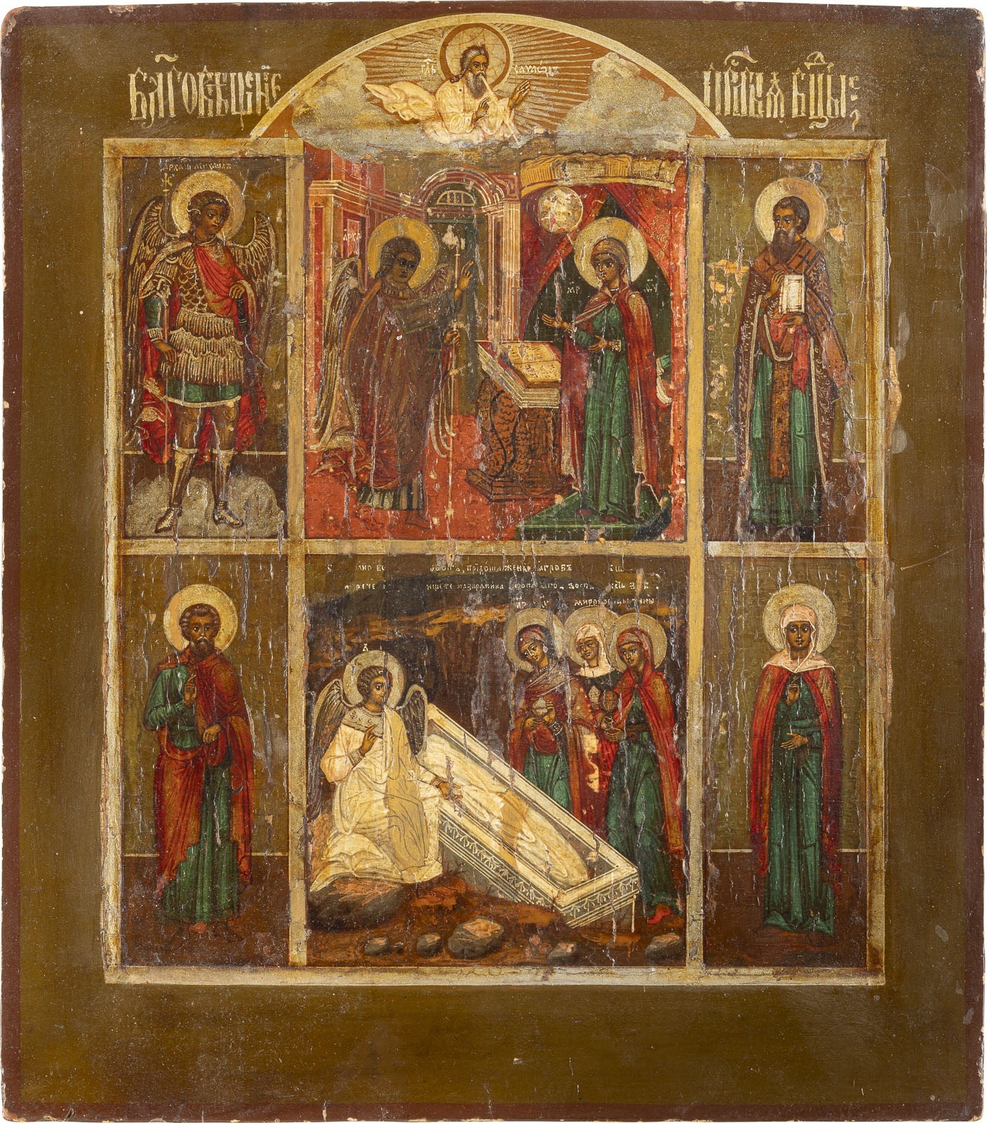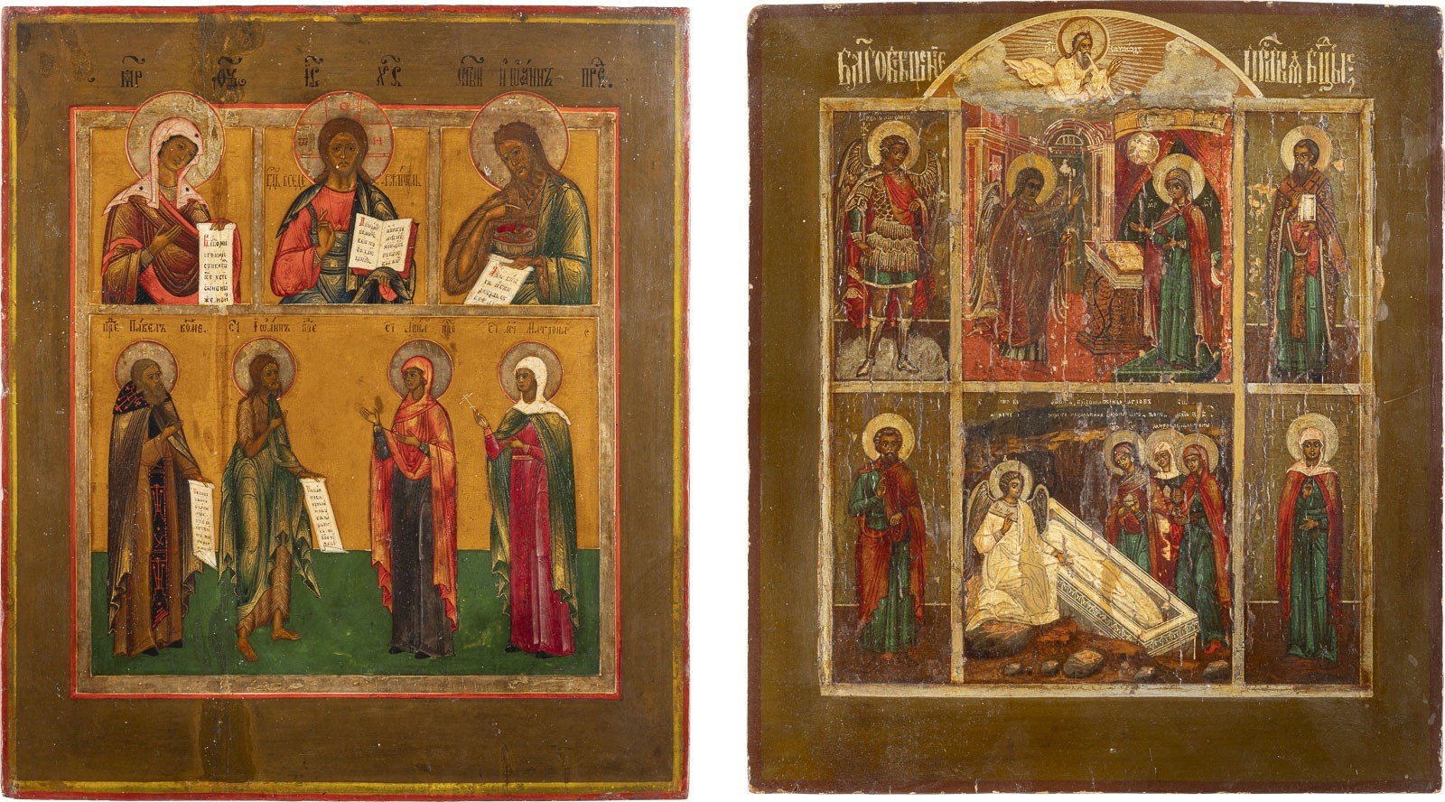 ZWEI MEHRFELDER-IKONEN MIT DEESIS, DER VERKÜNDIGUNG, DEN FRAUEN AM GRAB UND HEILIGEN
