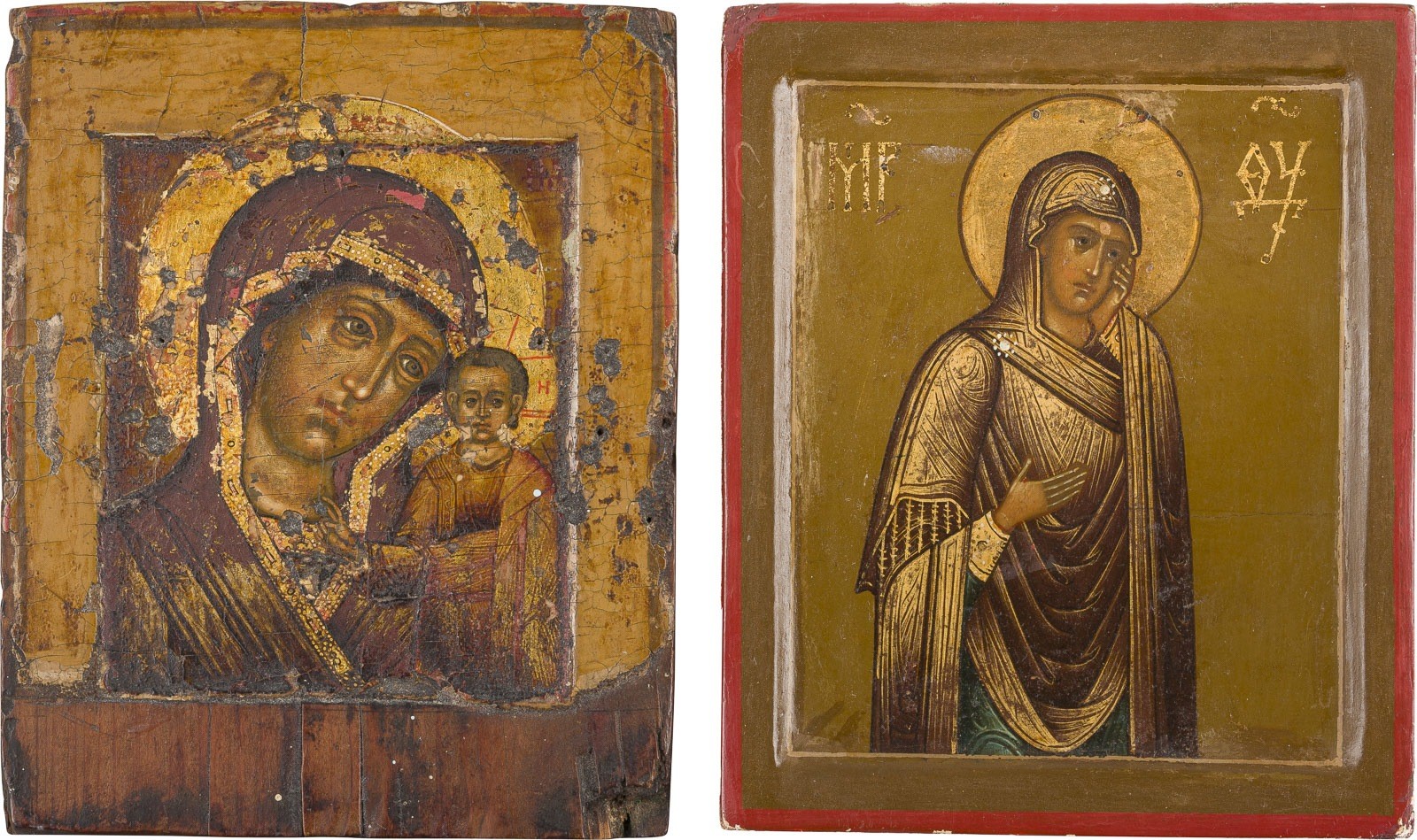 ZWEI MINIATUR-IKONEN MIT DER GOTTESMUTTER VON KASAN UND DER TRAUERNDEN GOTTESMUTTER