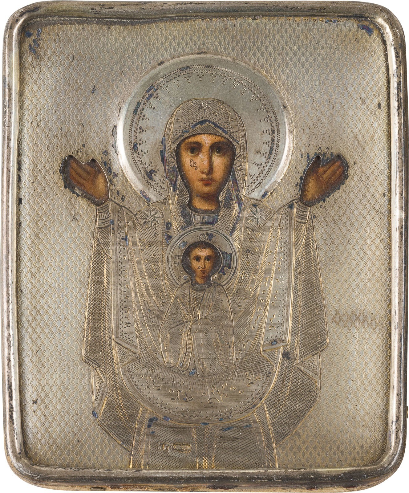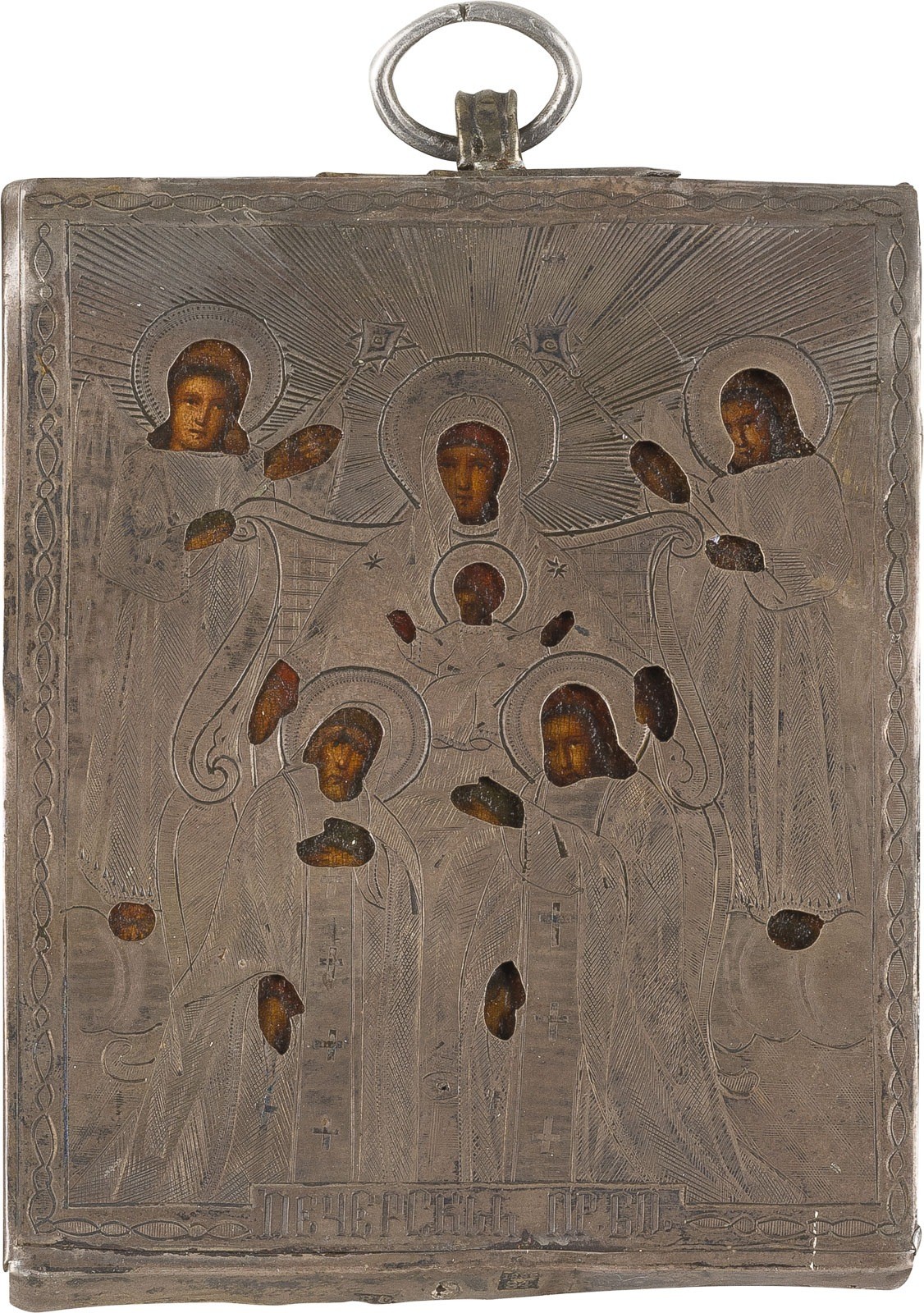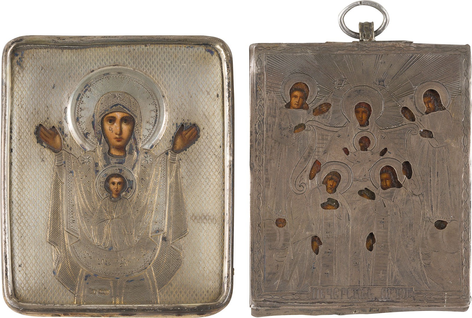 ZWEI MINIATURIKONEN MIT SILBER-OKLAD: GOTTESMUTTER DES ZEICHENS UND GOTTESMUTTER PETSCHERSKAJA