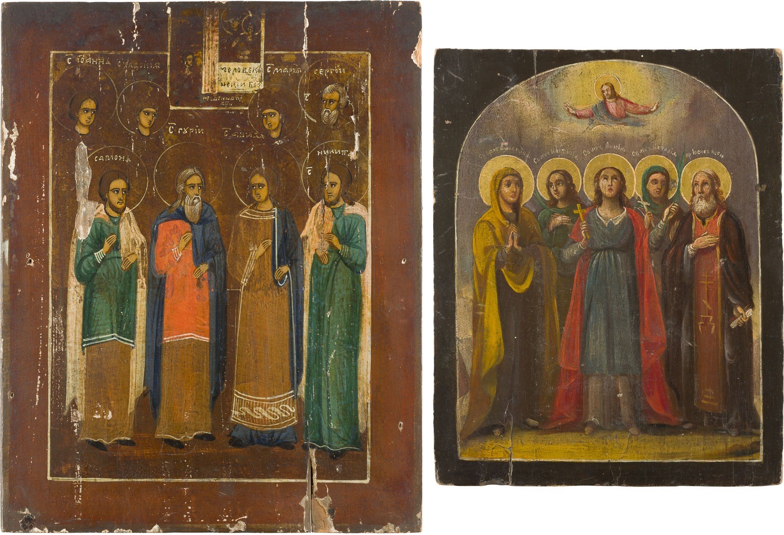 ZWEI PATRONATSIKONE MIT AUSGEWÄHLTEN HEILIGEN