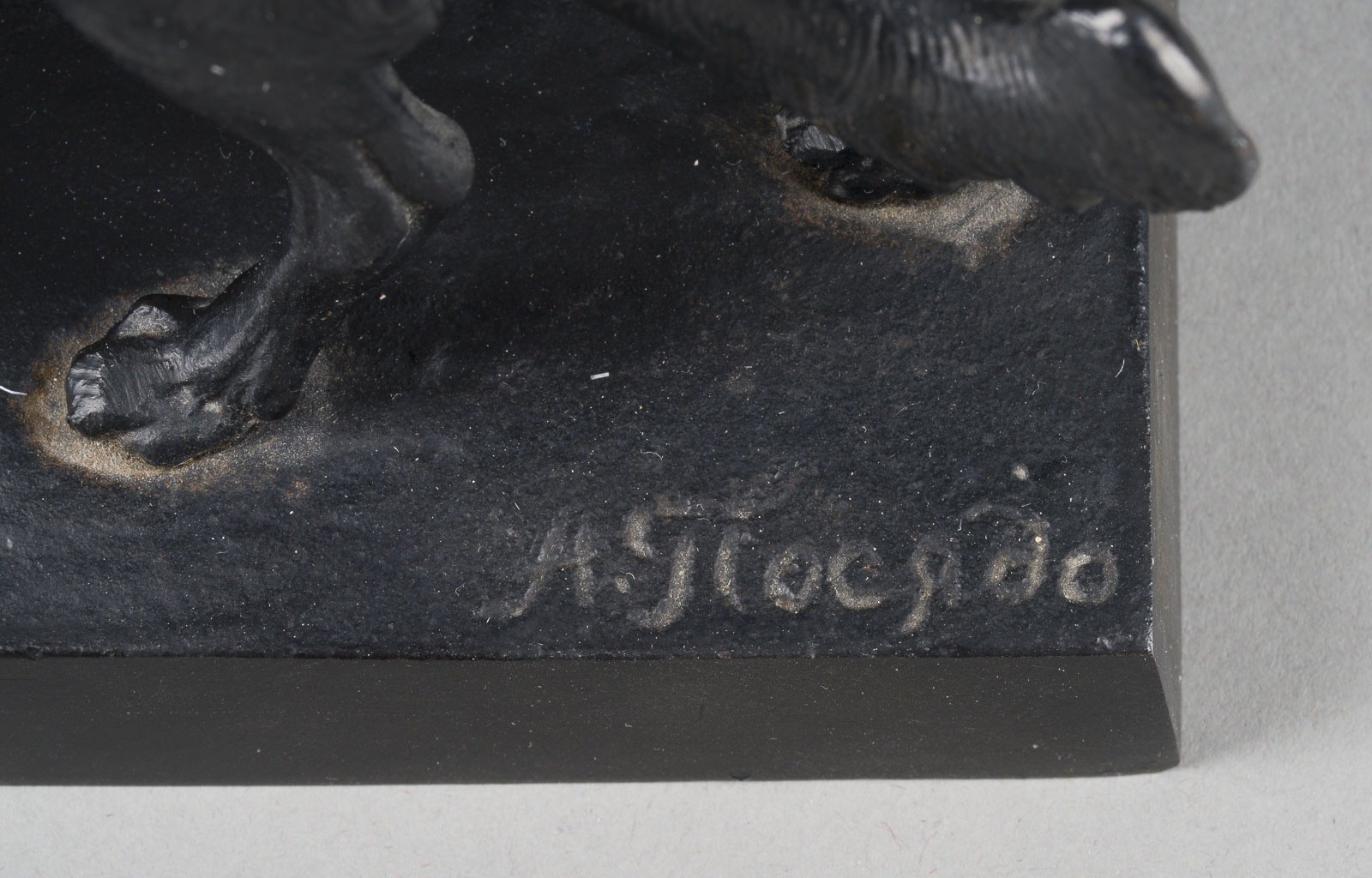 Eisen, vollplastisch gegossen, geschwärzt. L. 19 cm. Auf dem Sockel in Kyrillisch bez. 'A. Posjado', auf der Unterseite mit Firmenmarke.