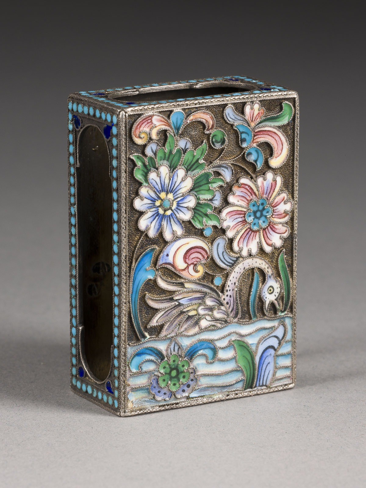 CLOISONNÉ-EMAIL-STREICHHOLZETUI MIT SCHWAN