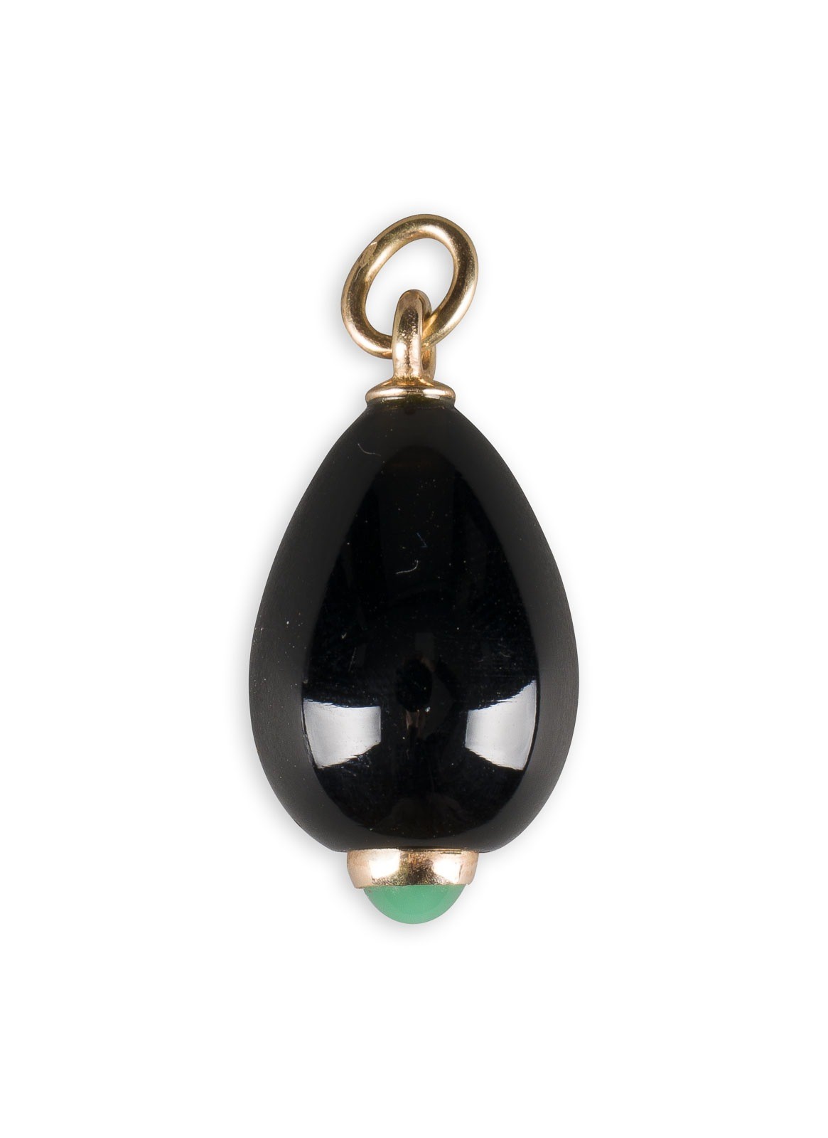 Goldmontierung, Onyx, Chrysopras. L. 2,7 cm. Punziert mit Marke der Bezirksbeschauadministration mit Feingehalt '56'.