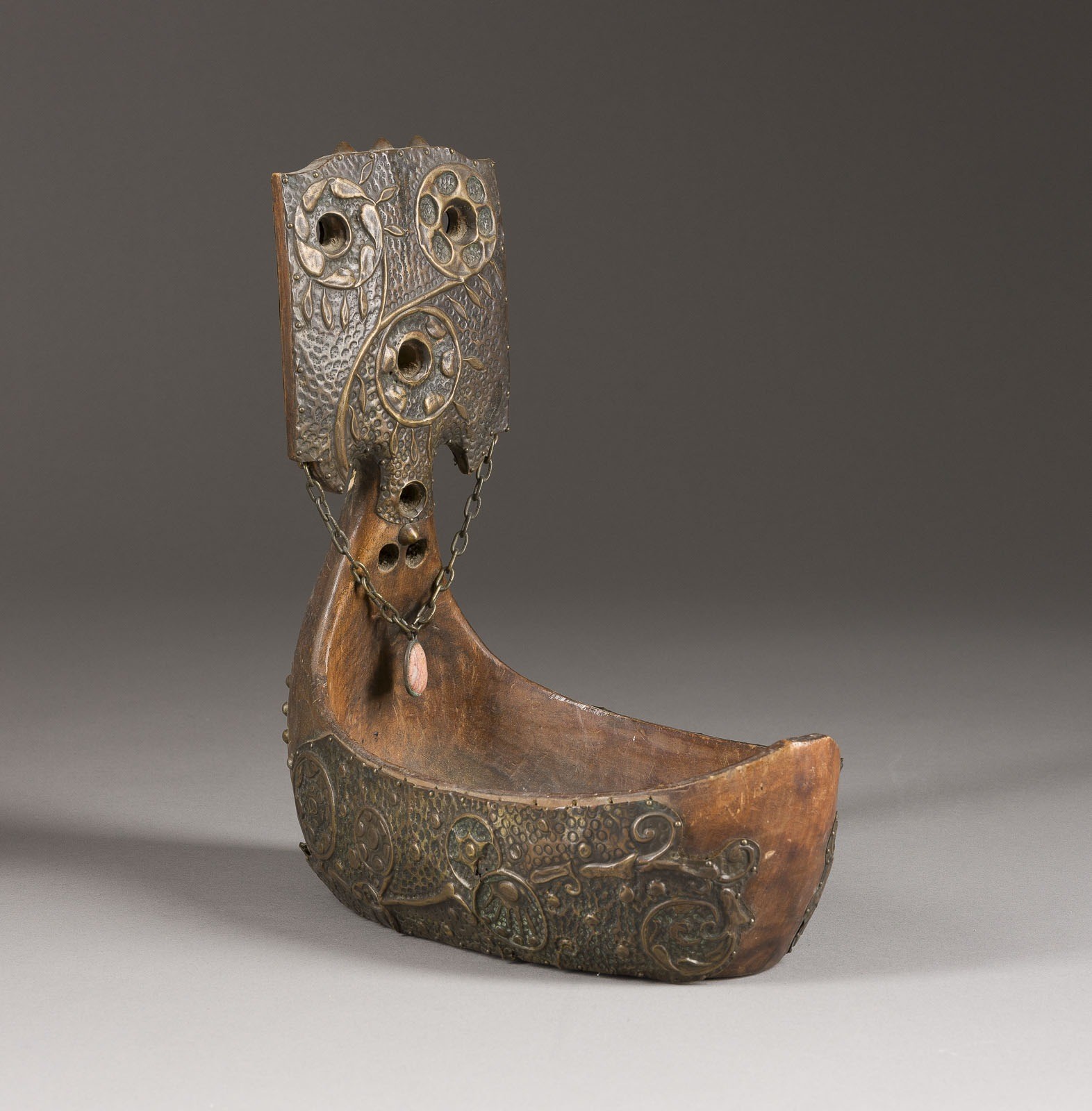 Holz, Messing, getrieben. L. 23 cm. Nägel teils fehlen.