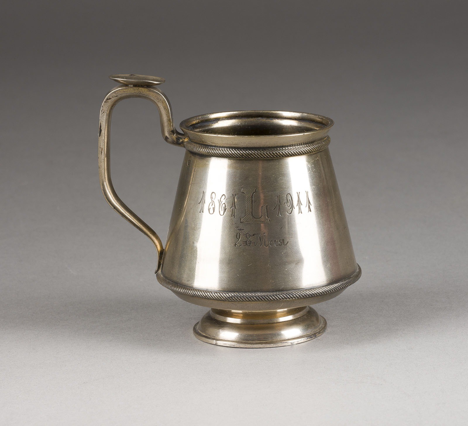 HENKELTASSE MIT GRAVURMONOGRAMM UND DATIERUNG '1861 - 1911'