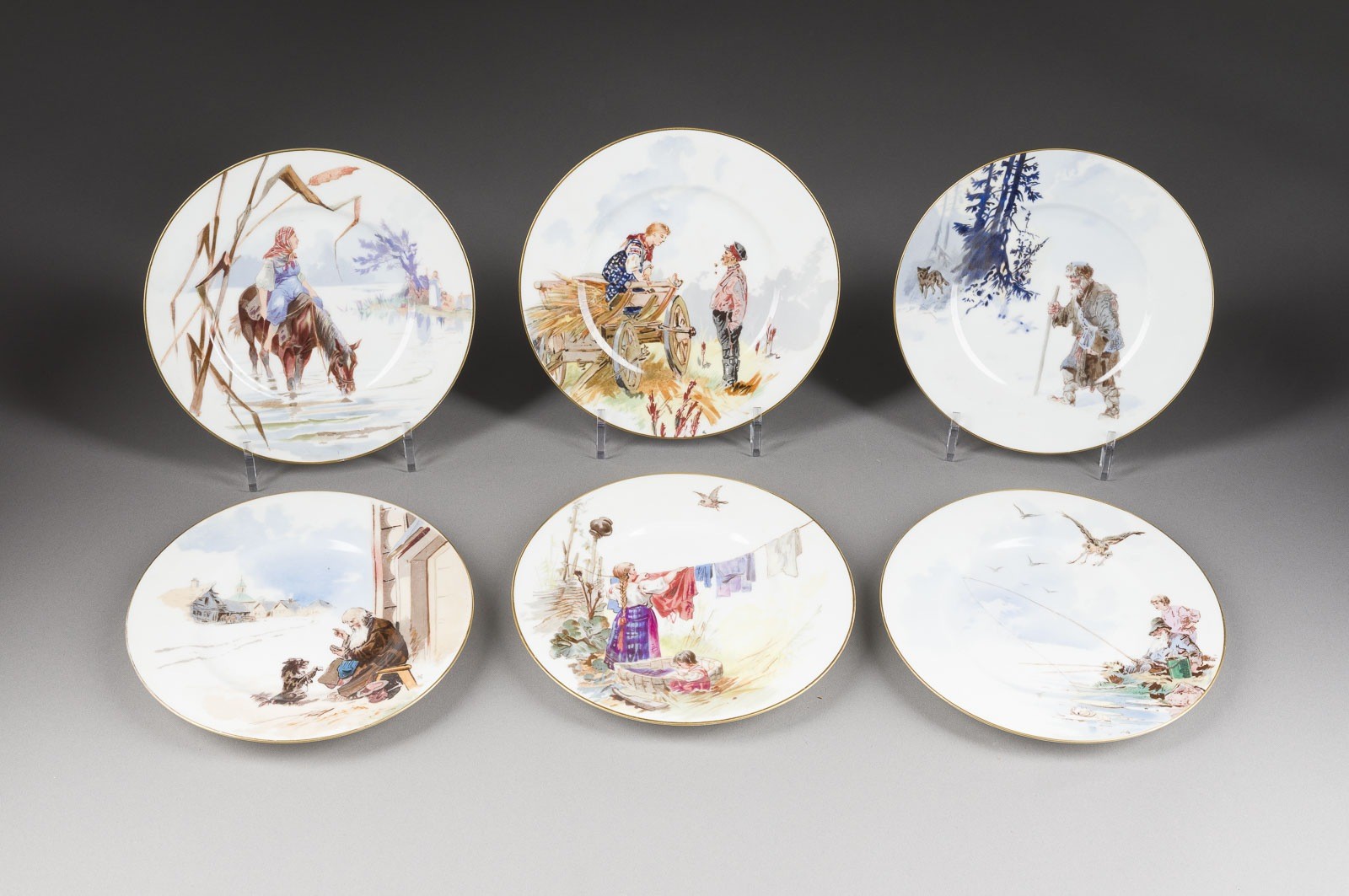 SAMMLUNG VON SECHS TELLERN MIT BÄUERLICHEN SZENEN