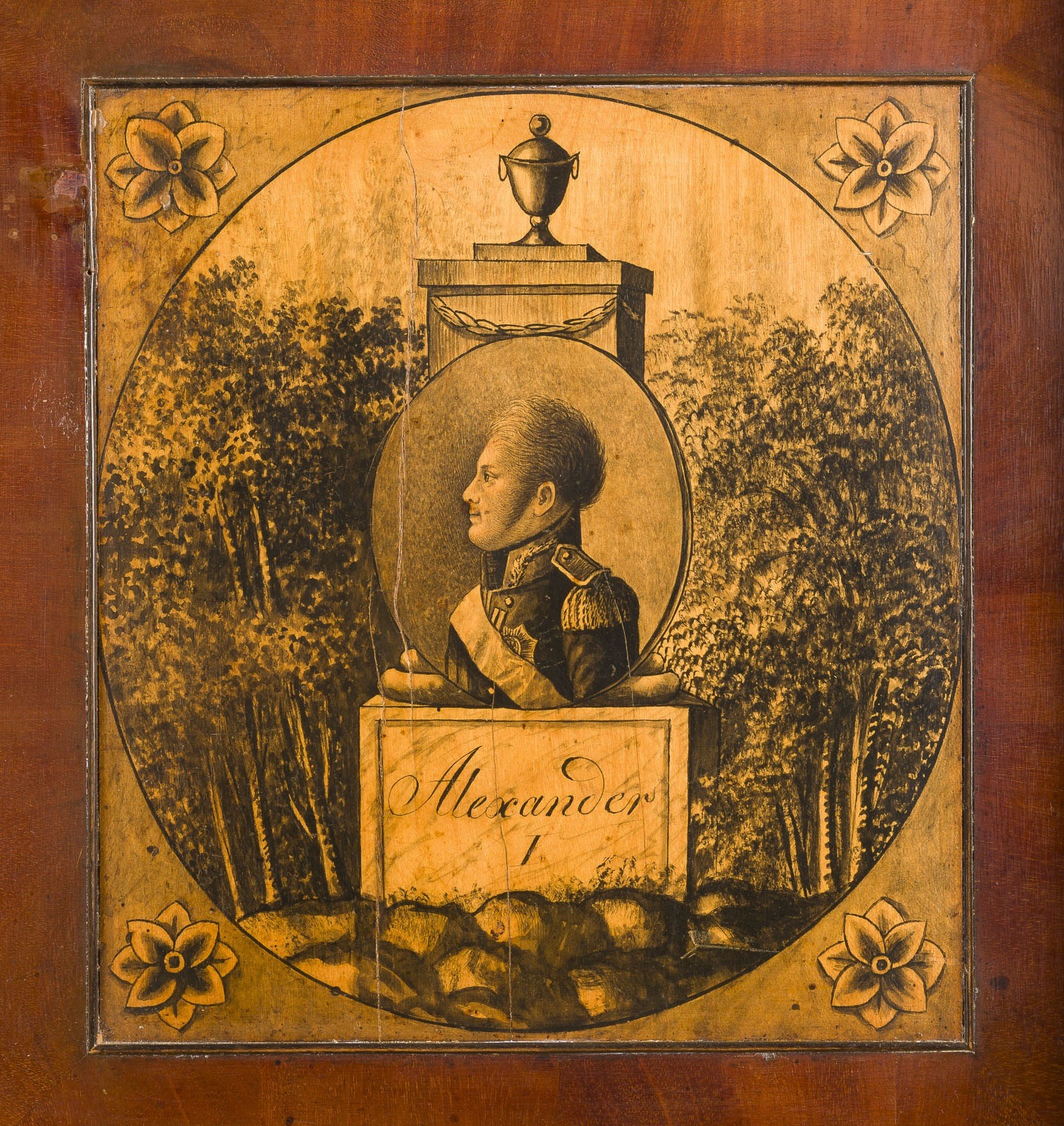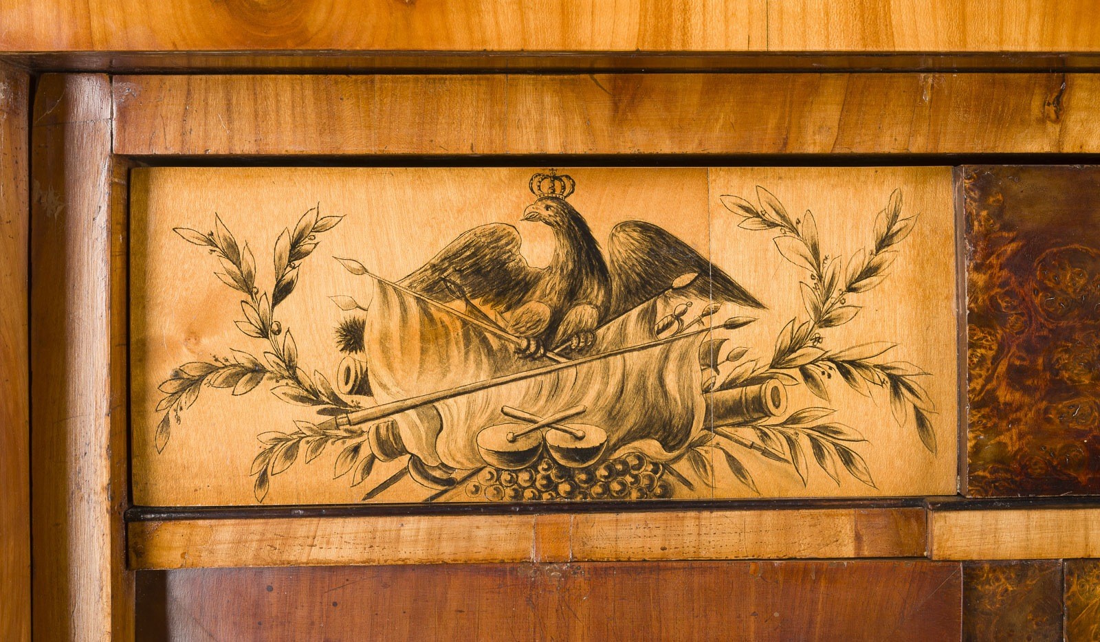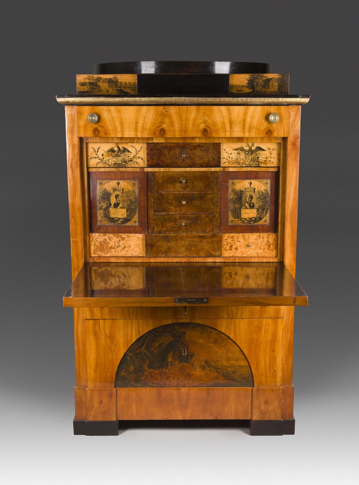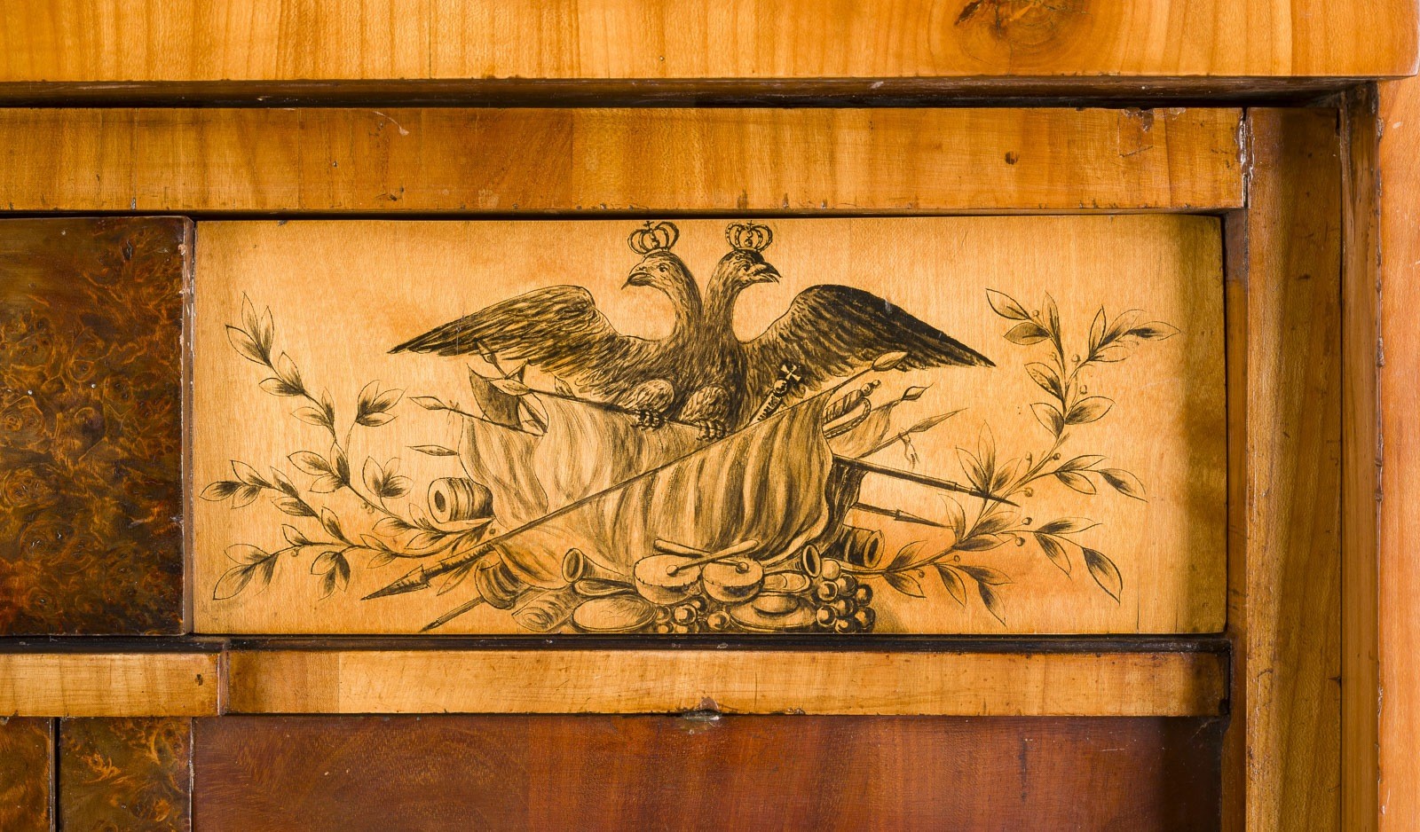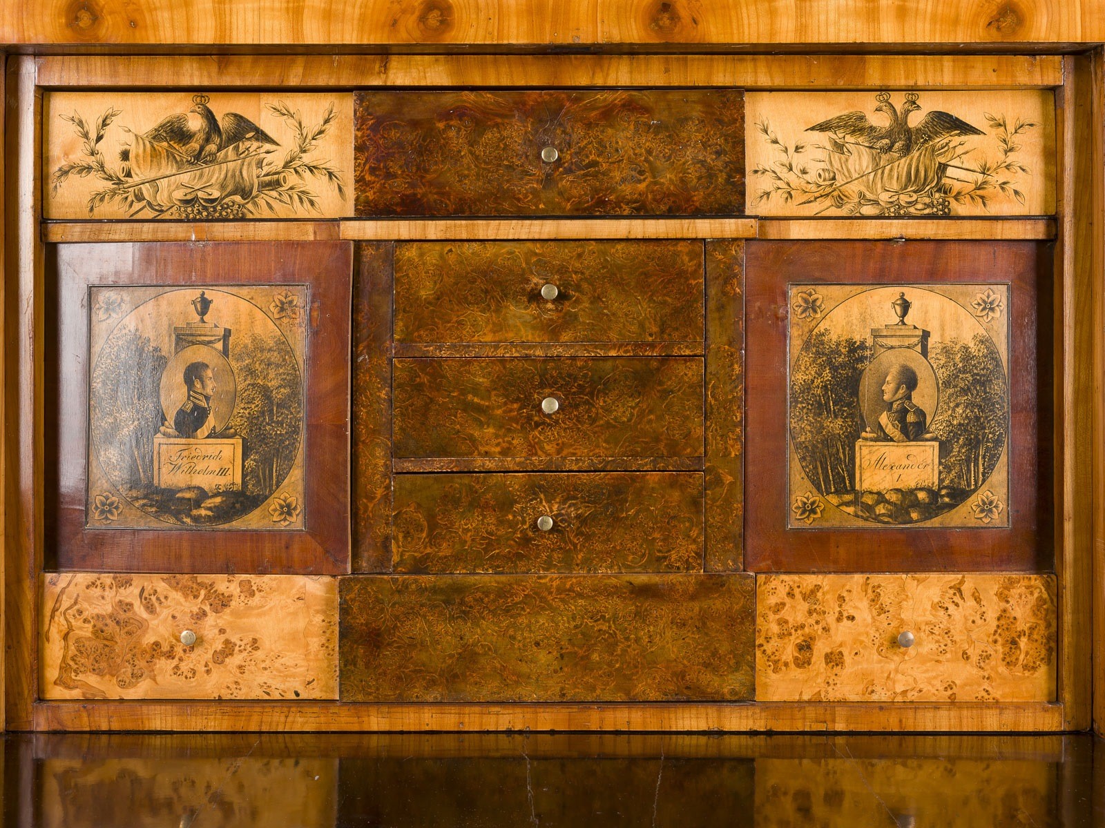 SEHR SELTENER BIEDERMEIER-SEKRETÄR MIT DEN INSIGNIEN DES RUSSISCH-PREUSSISCHEN MILITÄRBÜNDNISSES