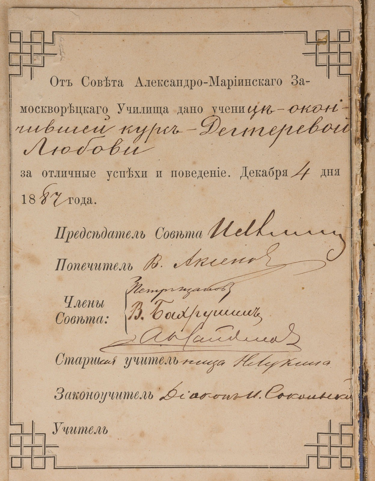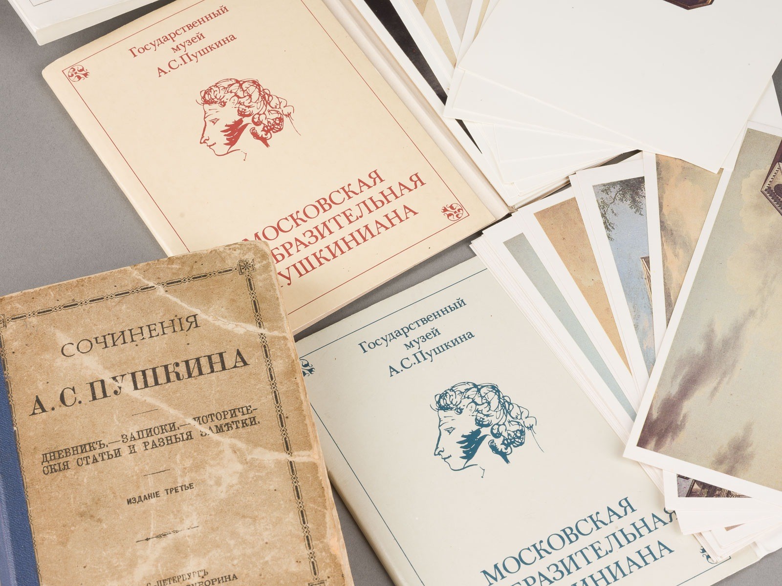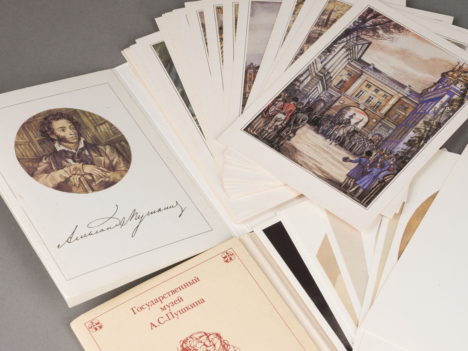 594 Seiten. 15 x 11 cm. Mit Widmungsbaltt des Rates der Alexandra-Mariinski-Schule in Samoskworezschje an die beste Schulerin des Kurses, Ljubow Degtjarewa; datiert 4. Dezember 1887. Als Beigabe drei sowjetischen Postkartensätze (1987). Part. berieben, die Seiten teilw. gelöst.
