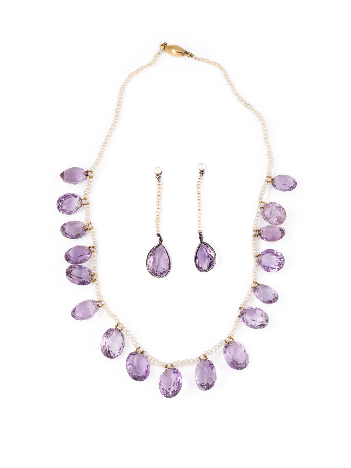 Amethysten zus. ca. 90.00 ct. und Perlen. Kastenschloss. Min best.
