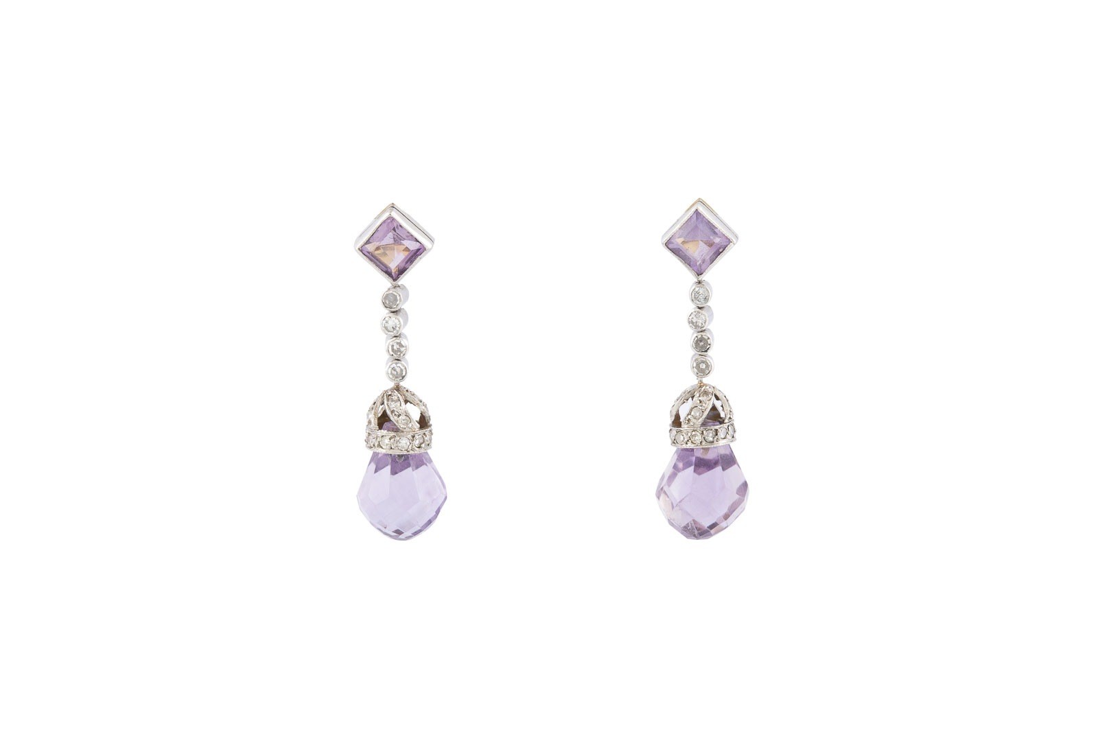 ein Amethyst-Tropfen im Brioletteschliff mit den Maßen: ca. 12,3 x 9,3 mm. Die Stecker