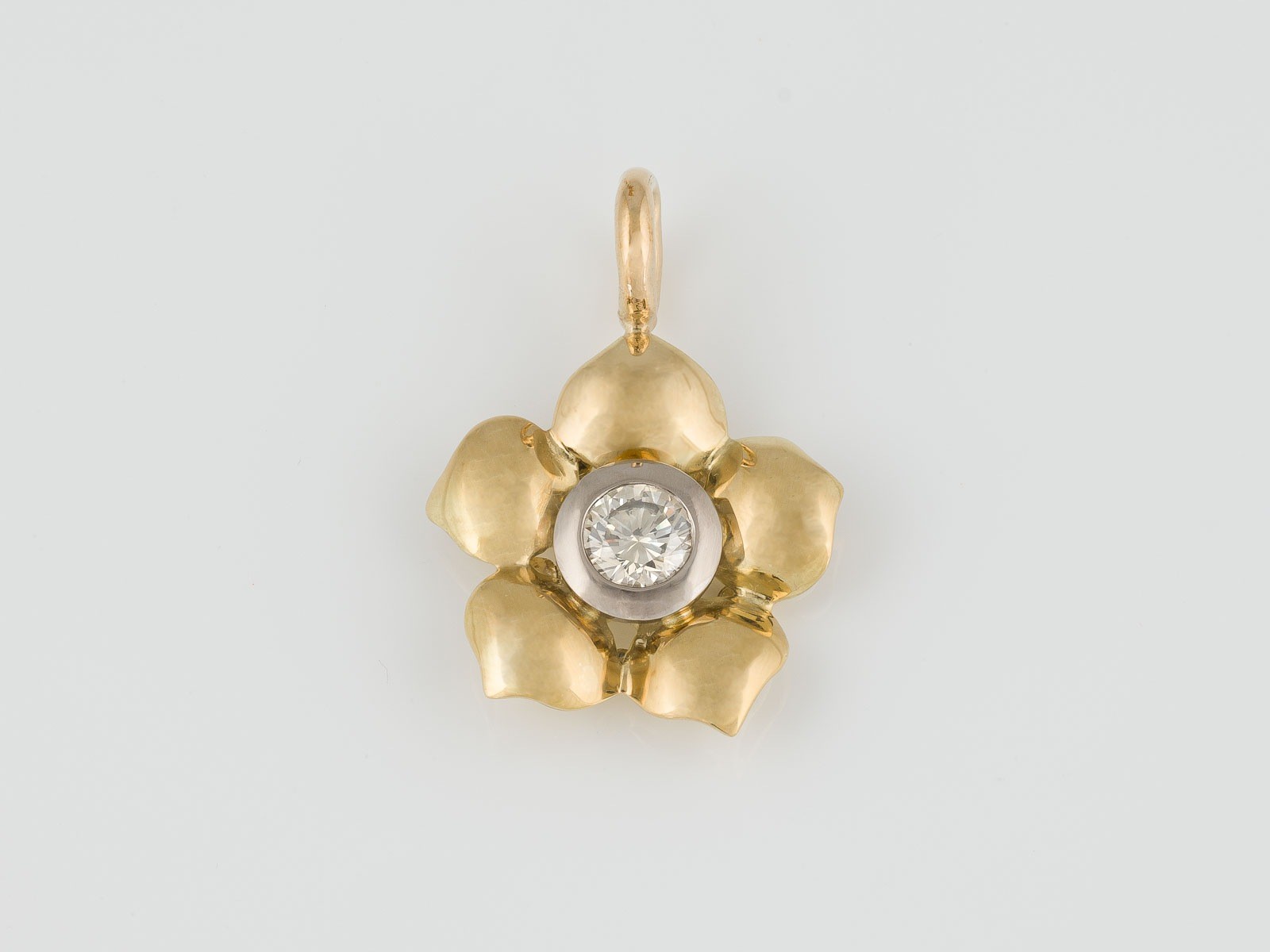 Gelbgold, Weißgold. L.3,6 cm, Ges.-Gew. ca. 8,4 g. Geprüft 18 K. Ein Brillant, D. ca. 6,64 mm, Höhe nicht messbar.