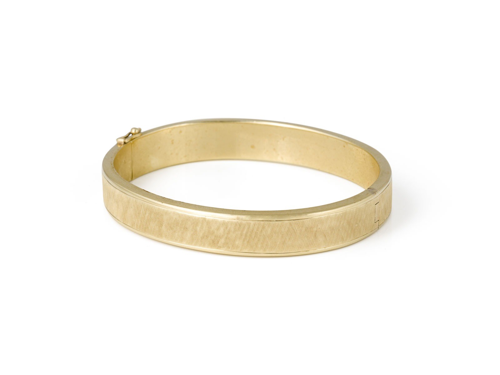 GG 585. Maße: D.(innen): ca. 62,0 mm, B.: ca. 10,0 mm. Ges.-Gew.: ca. 29,3 g. Armreif. Steckverschluss mit Sicherheitsschloss.
