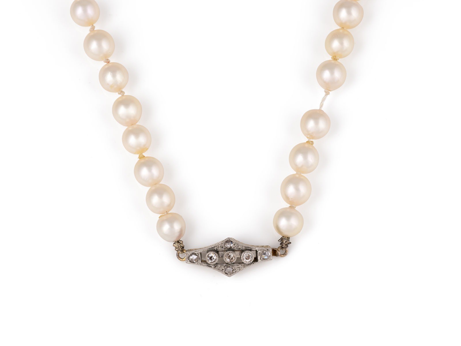 PT/GG 585 (getestet). L.: ca. 50,0 cm. Ges.-Gew.: ca. 24,7 g. Perlencollier. D.(Perle): ca. 6,3-6,4 mm.