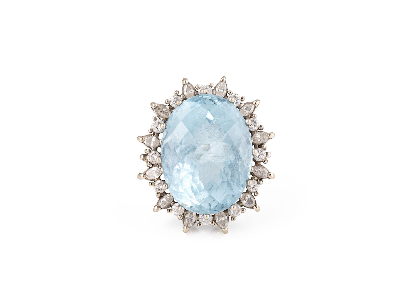 sowie einem Kranz aus Diamanten im Navette- und Brillantschliff zus. ca. 2.40 ct.