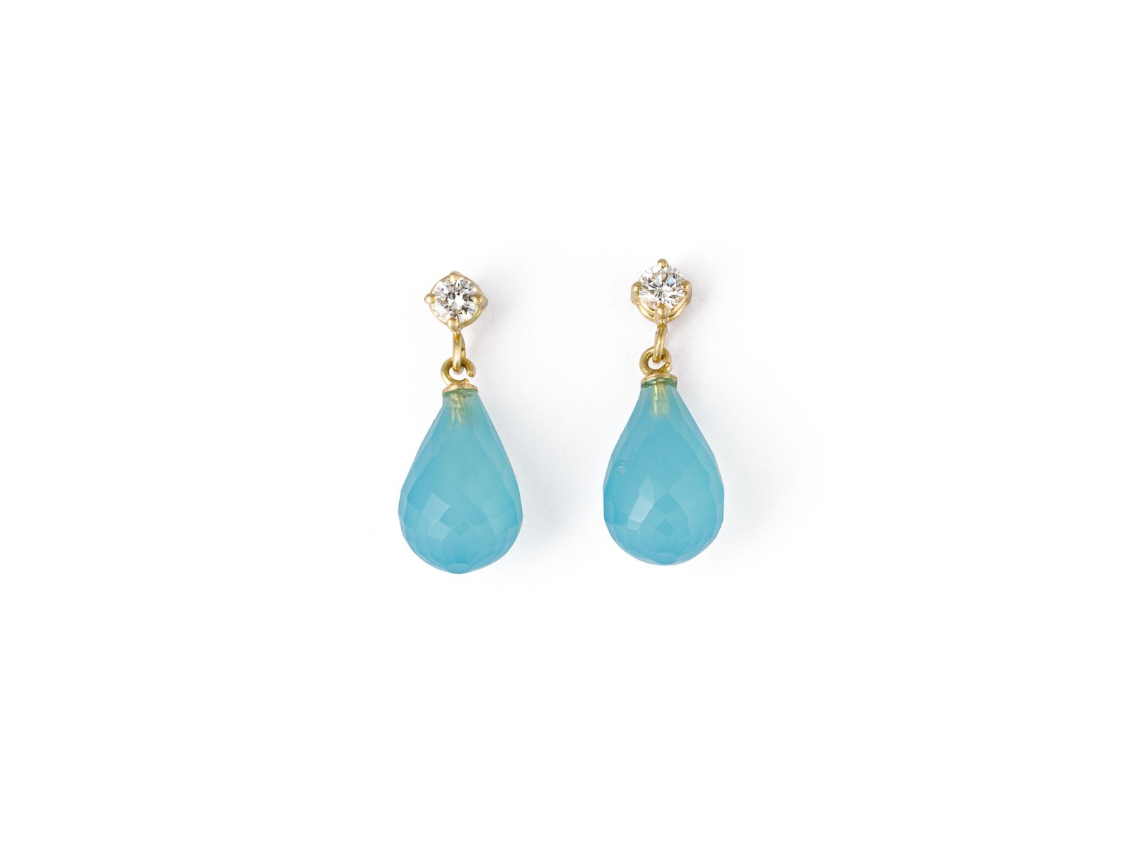 GG 750. Maße: ca. 22,0 mm x 8,5 mm. Ges.-Gew.: ca. 3,8 g. Ohrhänger, besetzt mit jeweils einem Brillanten á 0.13 ct. I-J/VS-P, sowie einem